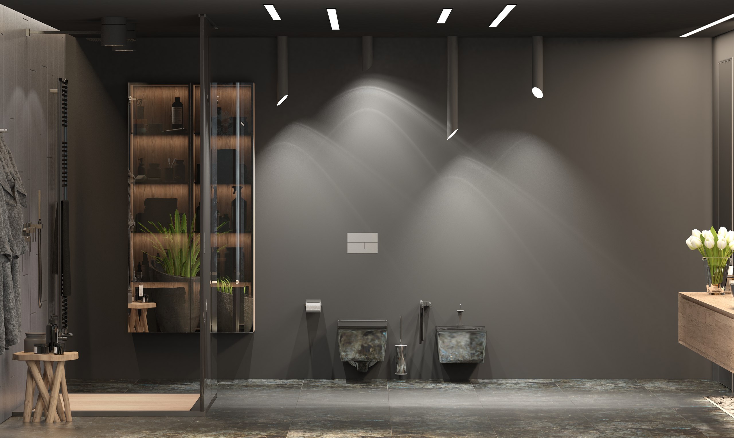 Всех приветствую! Дизайн интерьера ванной комнаты решил сделать в таком настроении. Буду рад жёсткой критике на счёт дизайна и виза.
