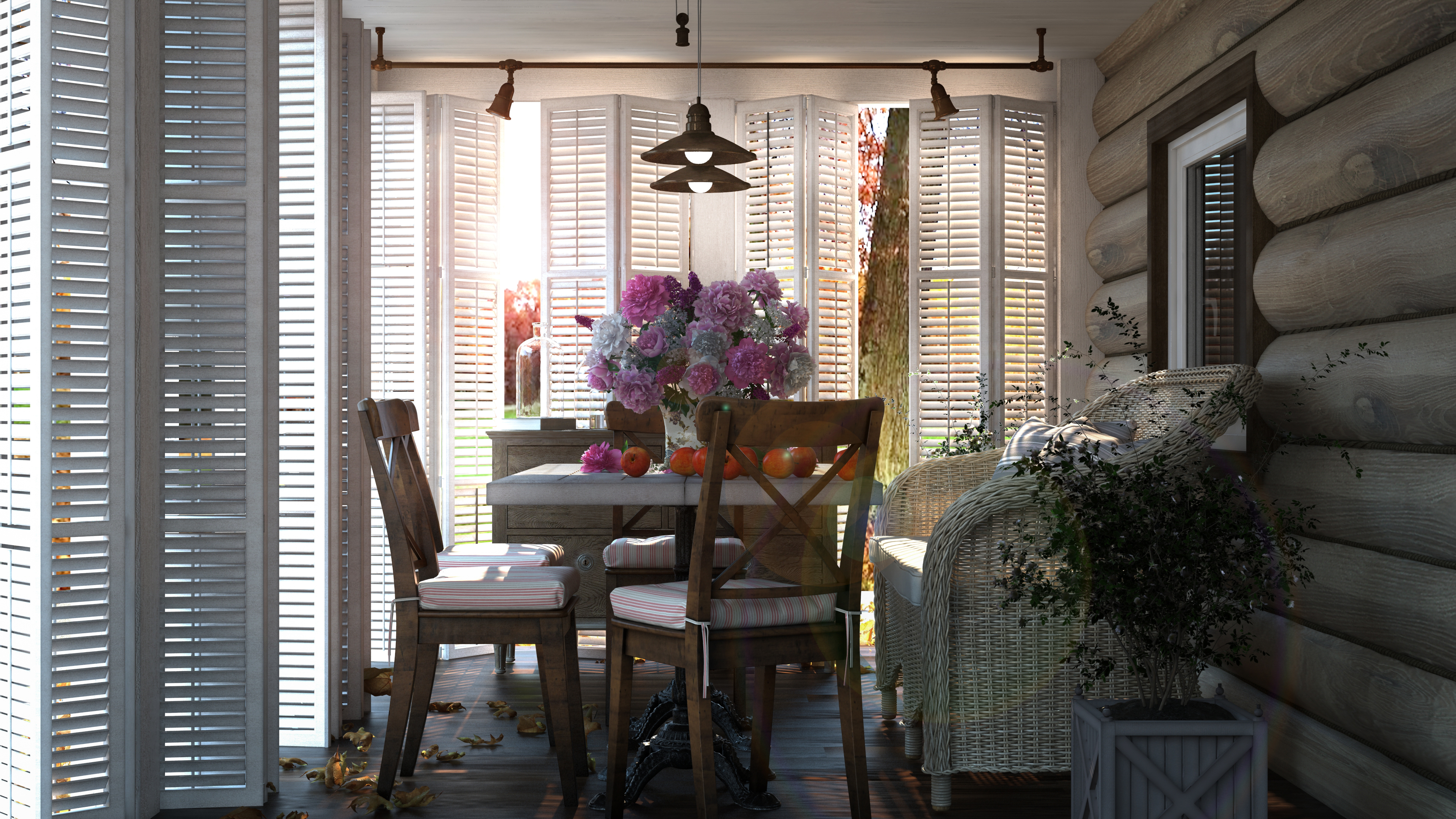 Классная веранда, здесь приятно провести время, настроение передано отлично!) Букет бесспорно шикарный, но может по времени года для большей гармонии лучше, например, астры или хризантемы, или еще что. имхо) +5!