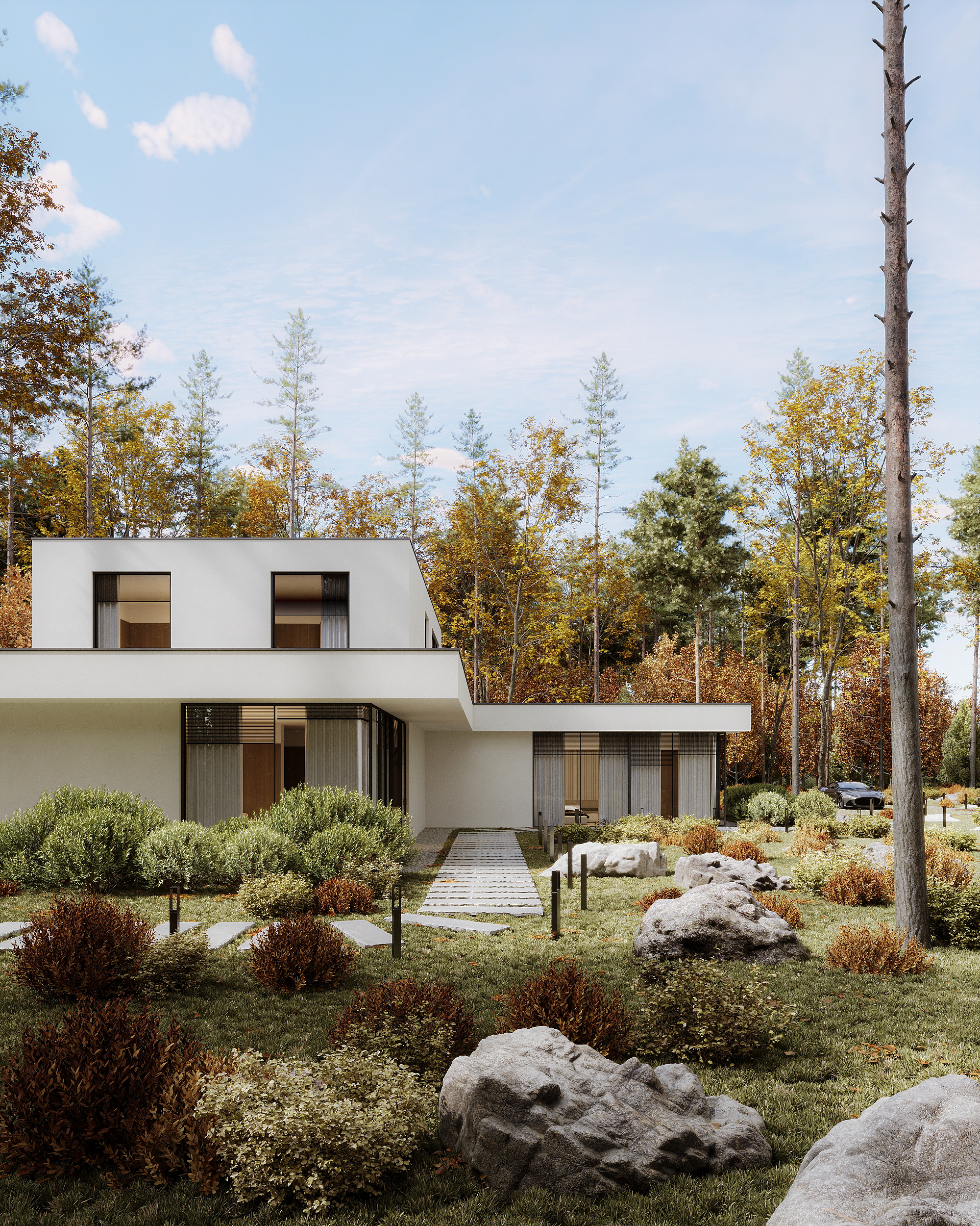 Это творческий проект, вдохновленный дикой природой Карелии. Моей главной целью было исследовать атмосферу северной осени и вписать современную минималистичную архитектуру в этот пейзаж. Также в кейс добавил небольшое описание того, как было создано окружение, для одного кадра записал step-by-step гифку - обязательно посмотри и тыкни лайк follow me: BEHANCE: