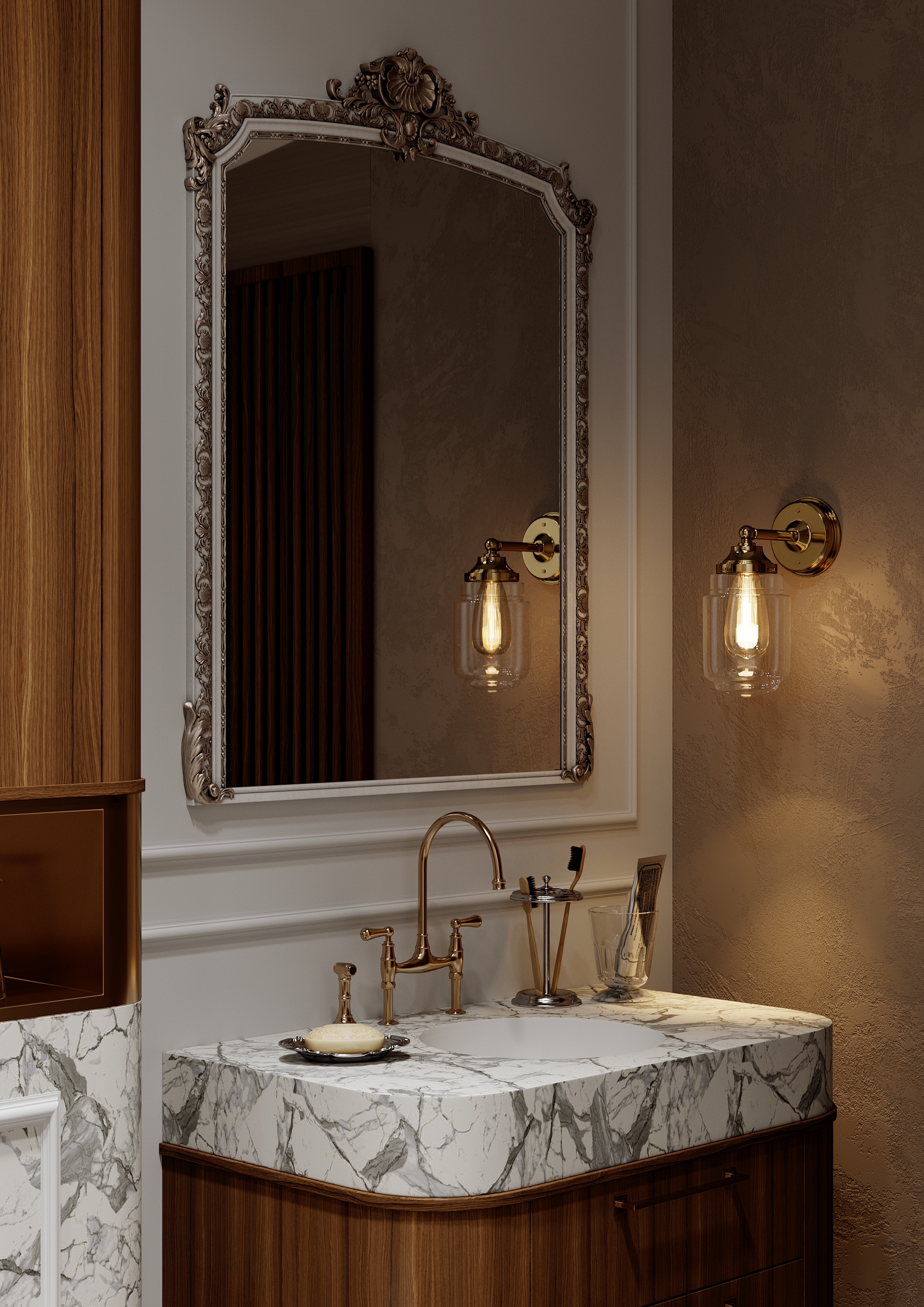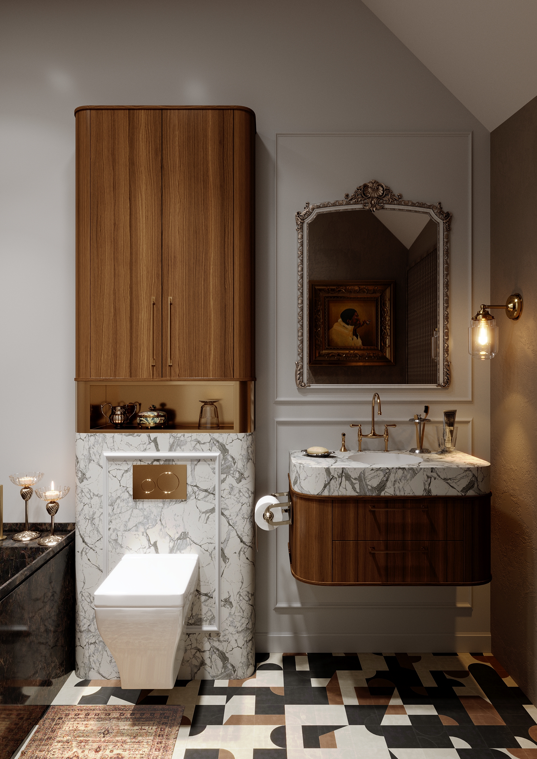 Ну, предъявлять визуализатору за унитаз, который выбрал некий дизайнер, из скорее всего существующей коллекции (например, Унитаз Villeroy & Boch La Belle за 100+к)
