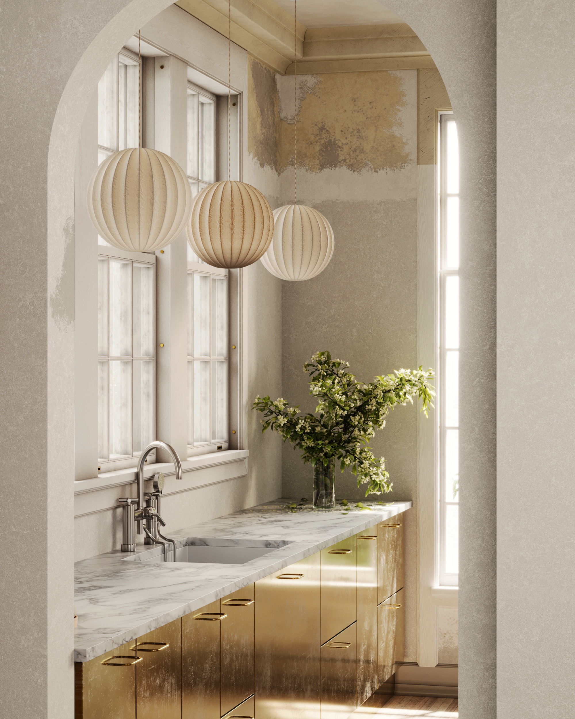 На самом деле - косяк в подоконнике, не обратила внимания, что там геометрия немного не такая, от этого так близко к смесителю и «прилип». В самом особняке смеситель и раковина плюс минус так и располагаются)