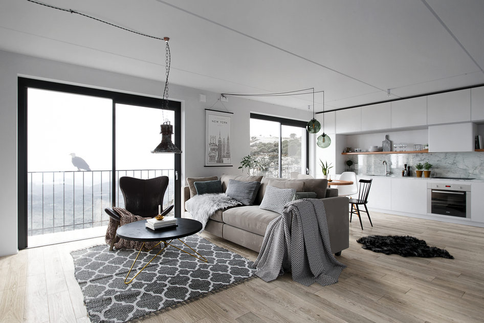 Привет. Меня вдохновил дизайн этой квартиры в Стокгольме (Швеция). Видел попытки других ребят так же повторить этот референс в галерее на 3ddd. Надеюсь, мне удалось выполнить проект не хуже. В данной работе всего порядка 18 ракурсов, есть так же вечерние. Всё доступно на behance в полном разрешении.