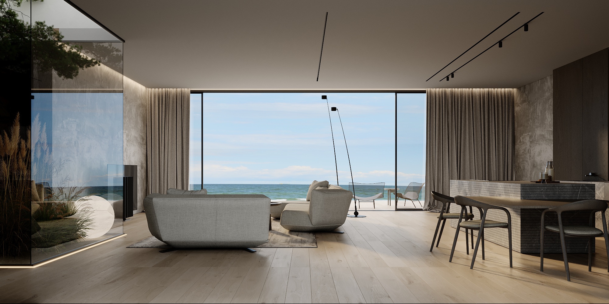Визуализация кухни-гостиной, работа с настройкой камер и материалов. 3Ds Max, Corona Render