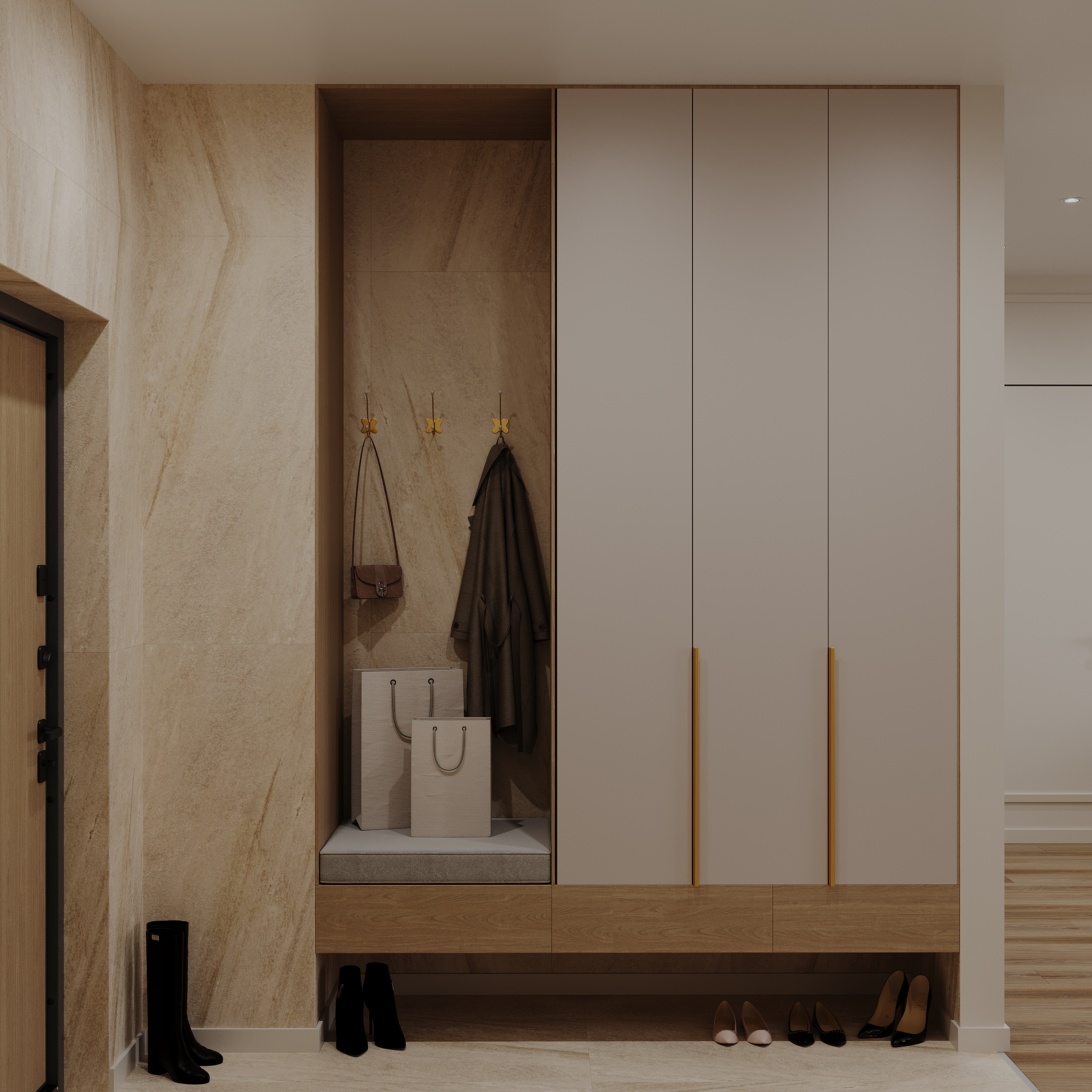 Визуализации квартиры в ЖК "Новатория". Прихожая и кухня.