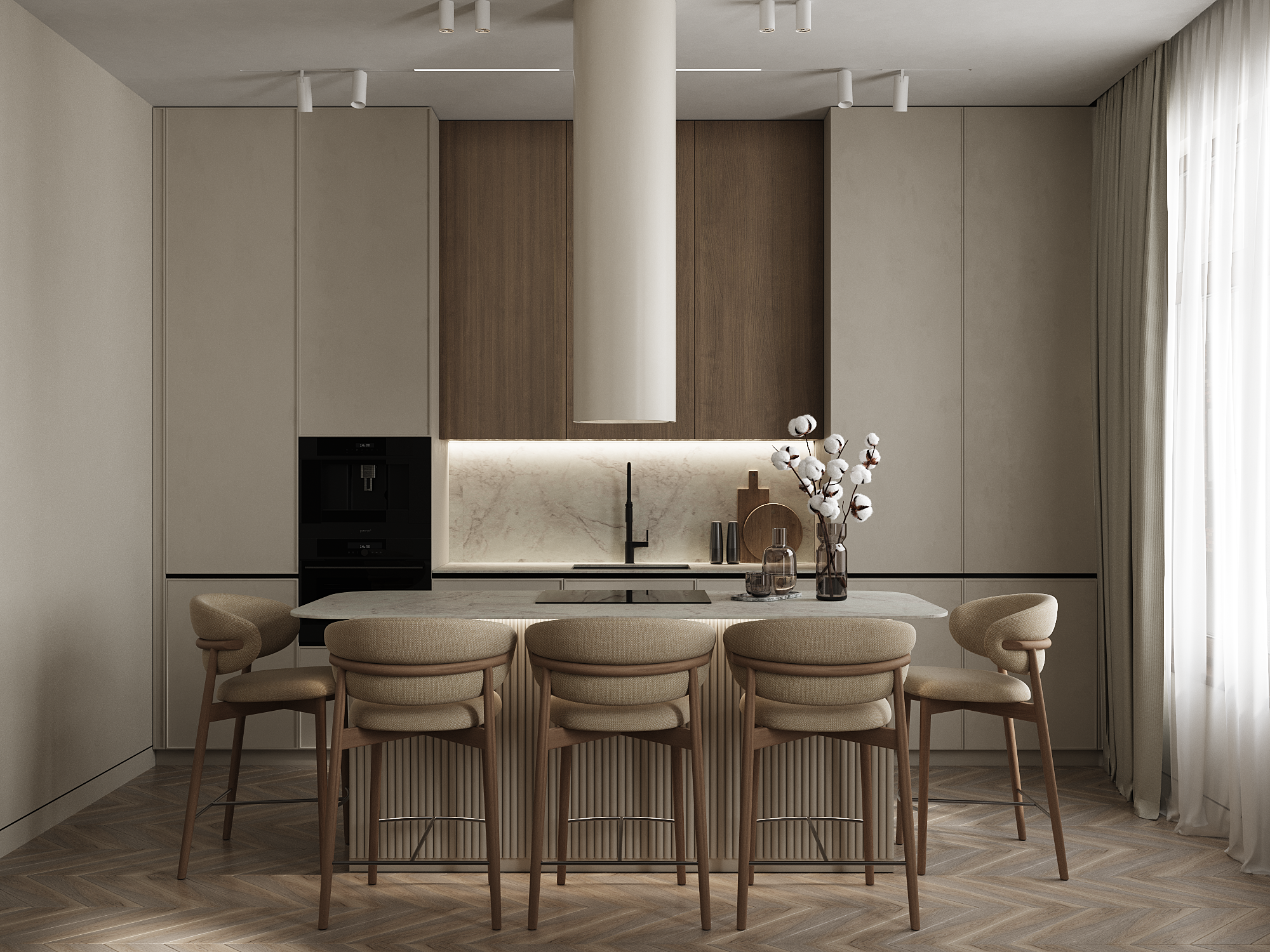 Визуализация интерьера кухни-гостиной