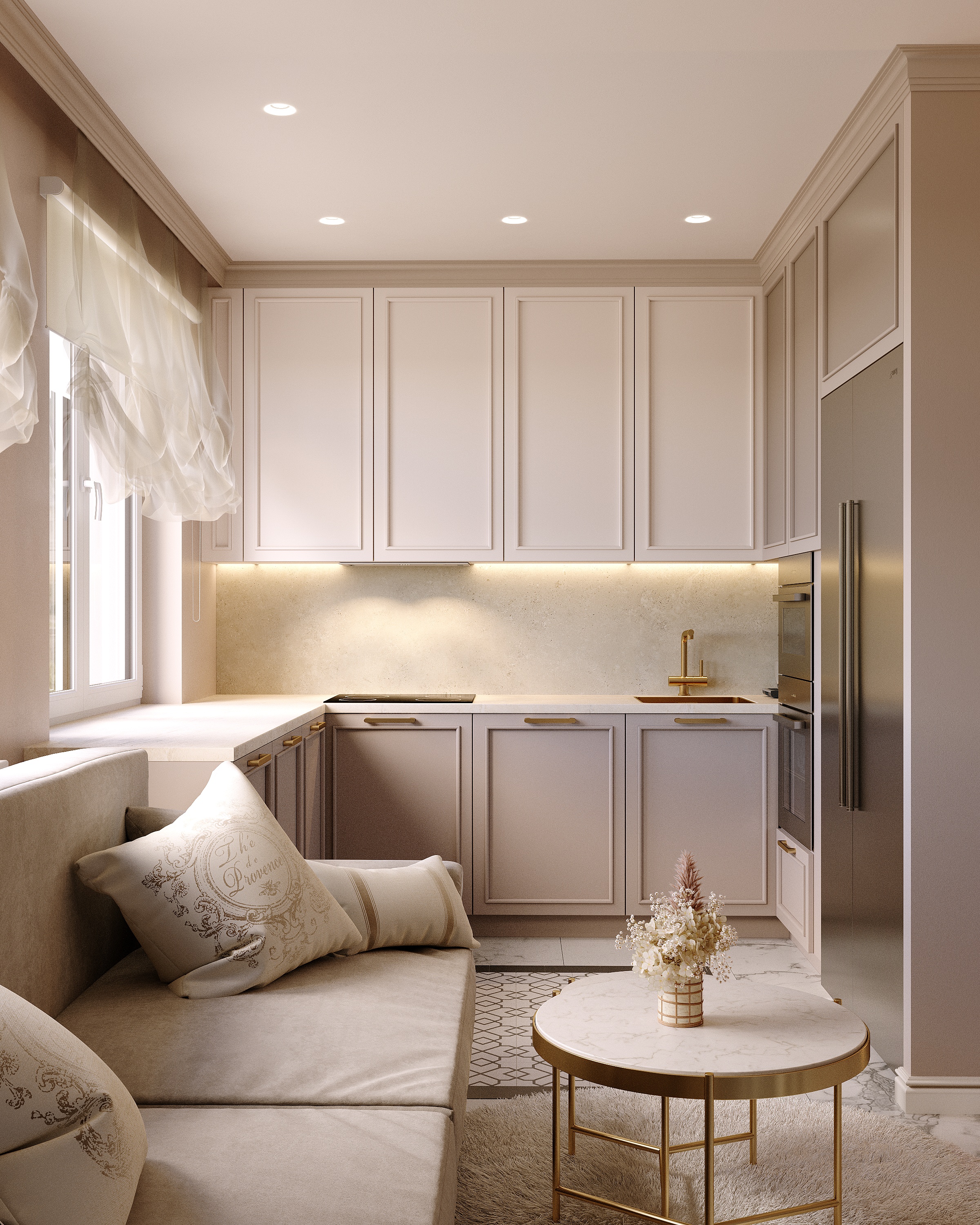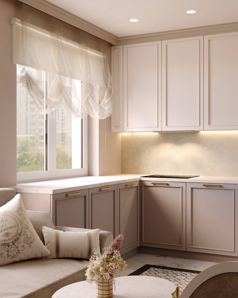 Интересно, каким образом откроются дверки шкафчика в углу кухни