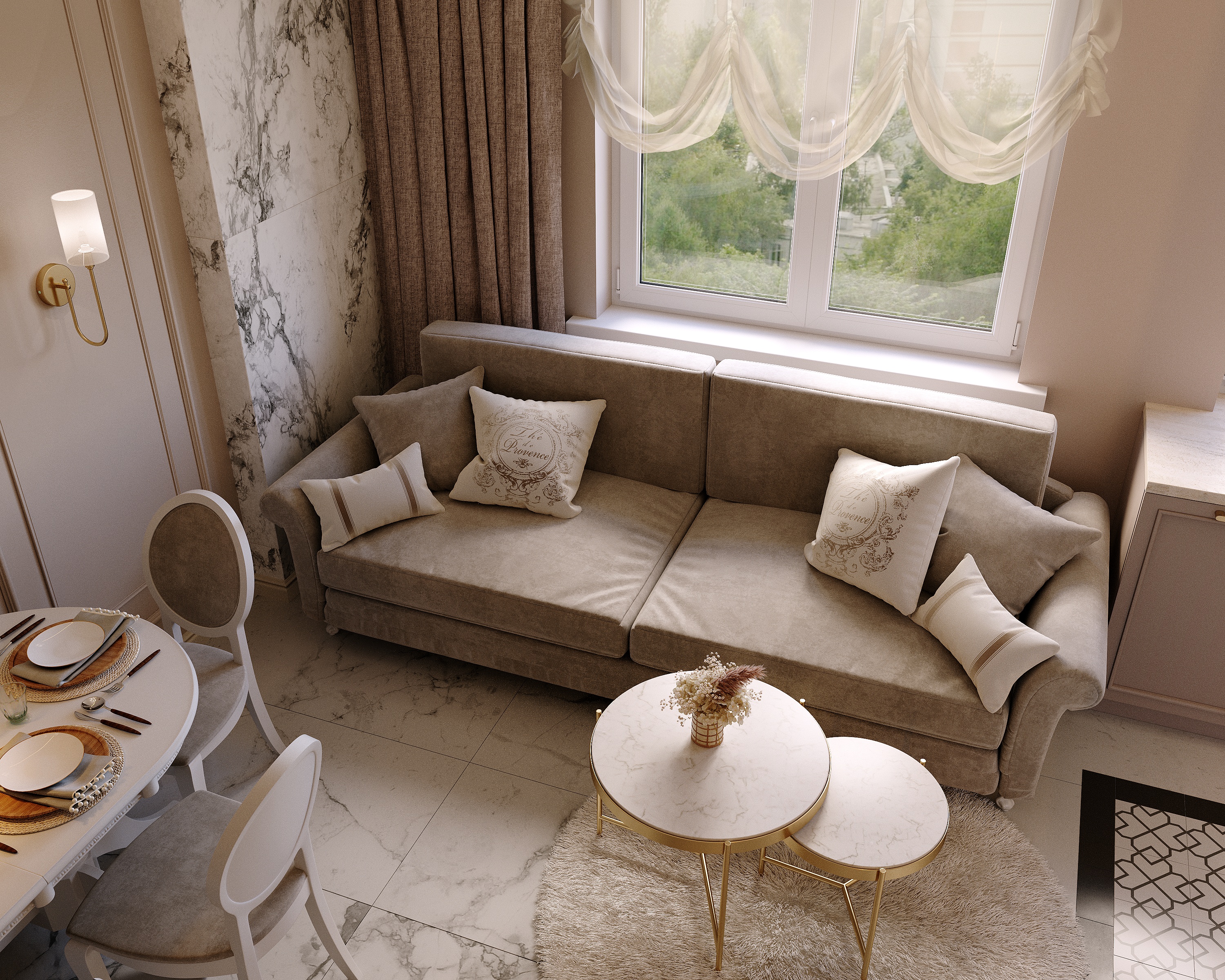 Хорошая работа, только что-то поставила бы на кухню, а то пустоватой выглядит)