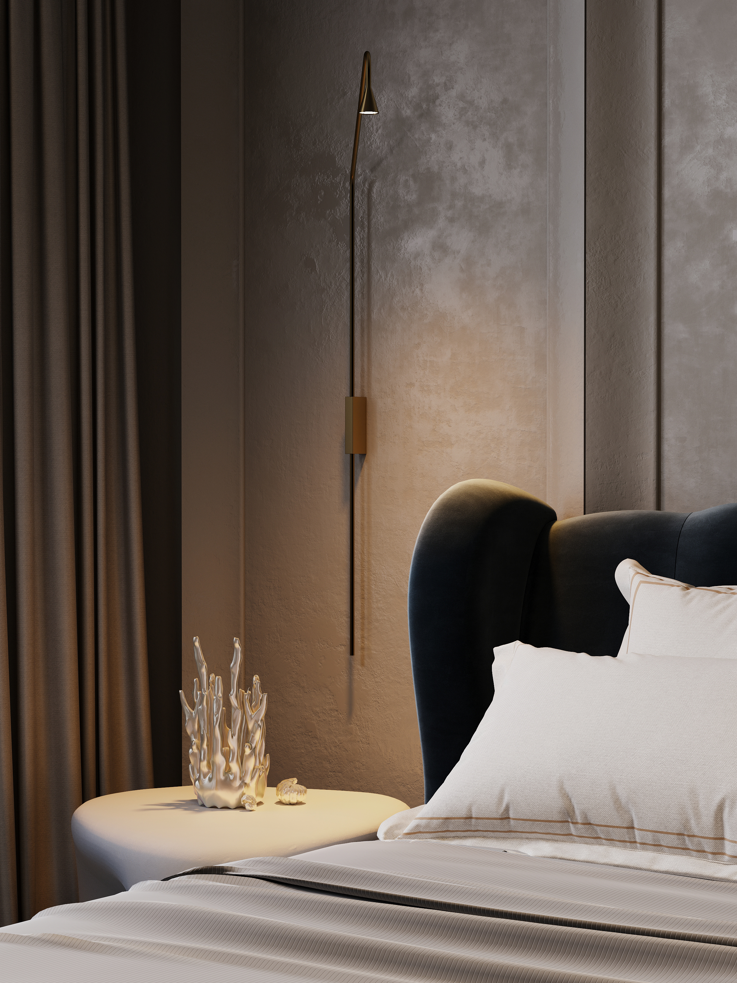 Визуализация спальни, в темных приятных оттенках