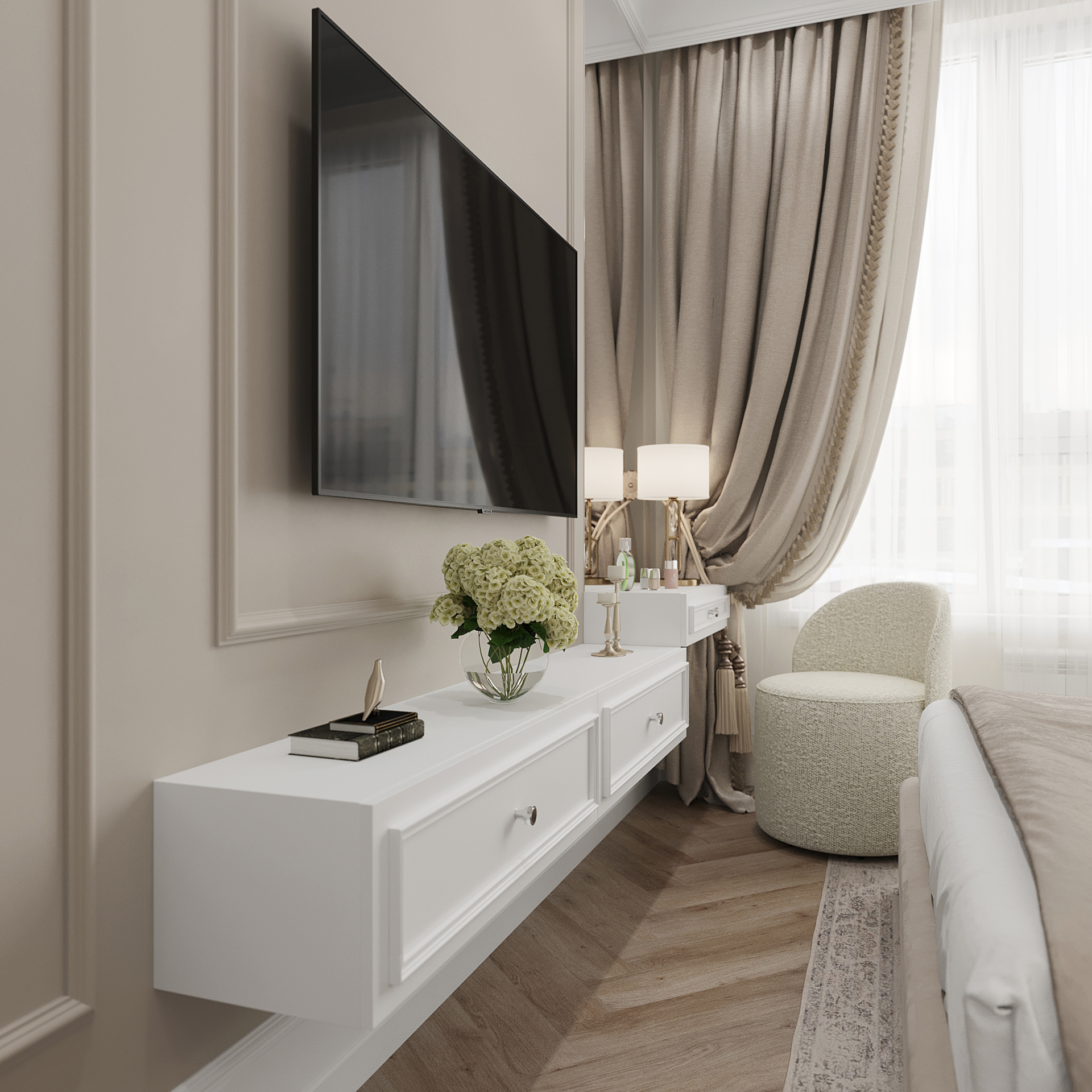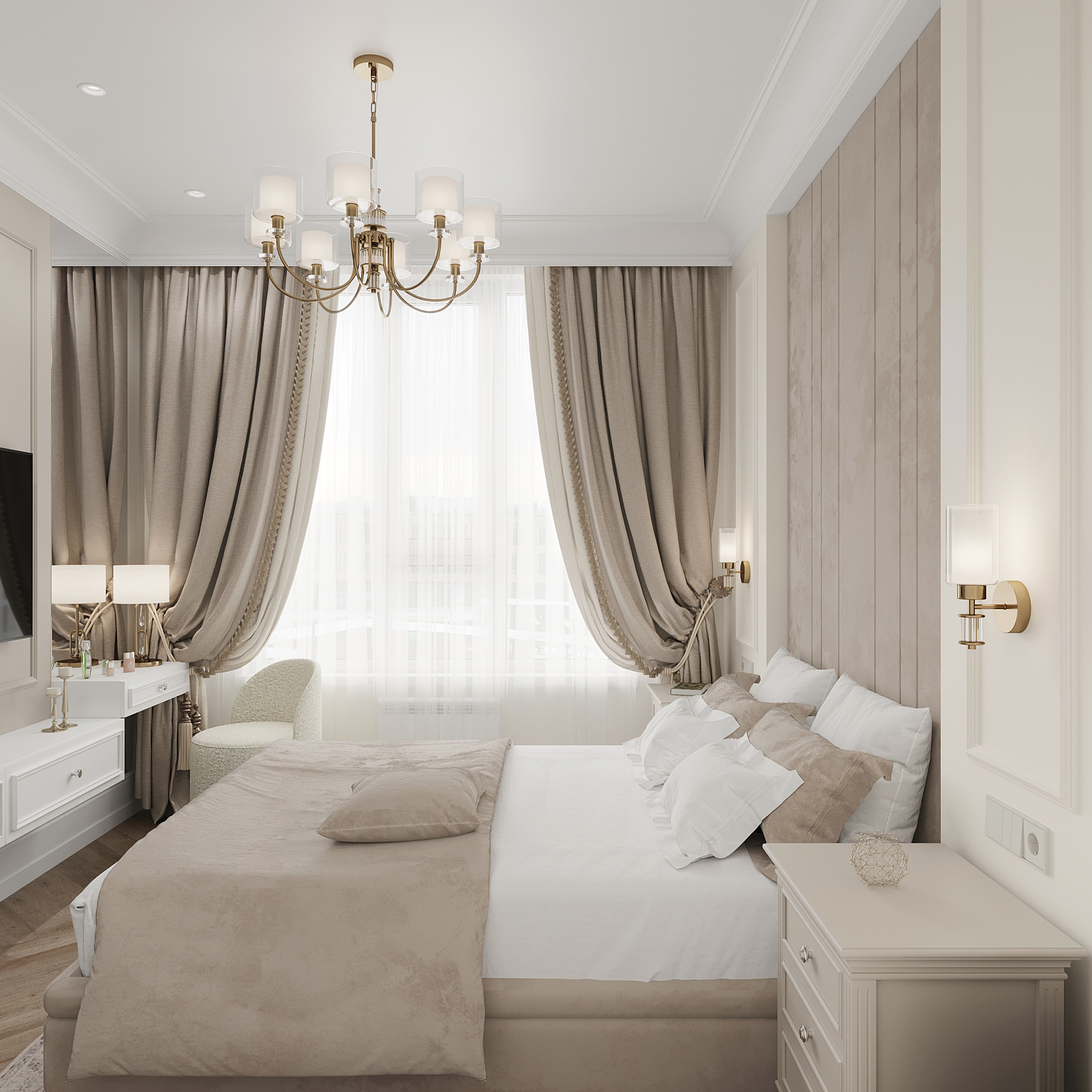 Визуализация спальни. Современная классика