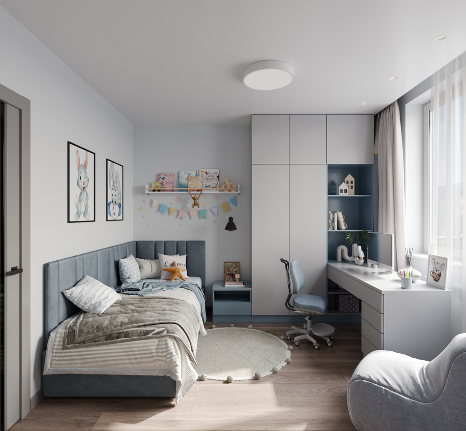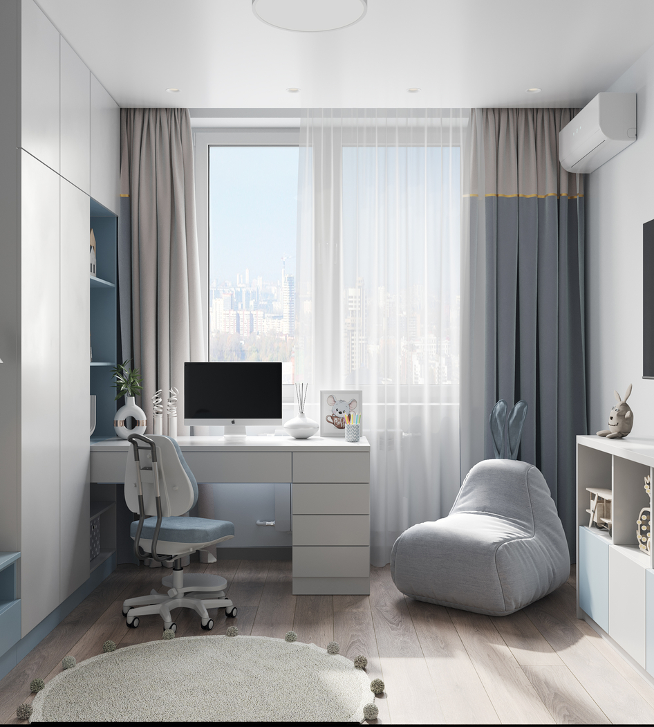 ну и задний план. ну сделайте нормальную панораму из окна. полно фонов. просто дальше поставьте, сделайте закругленную плоскость. ну как детская симпатично вышло