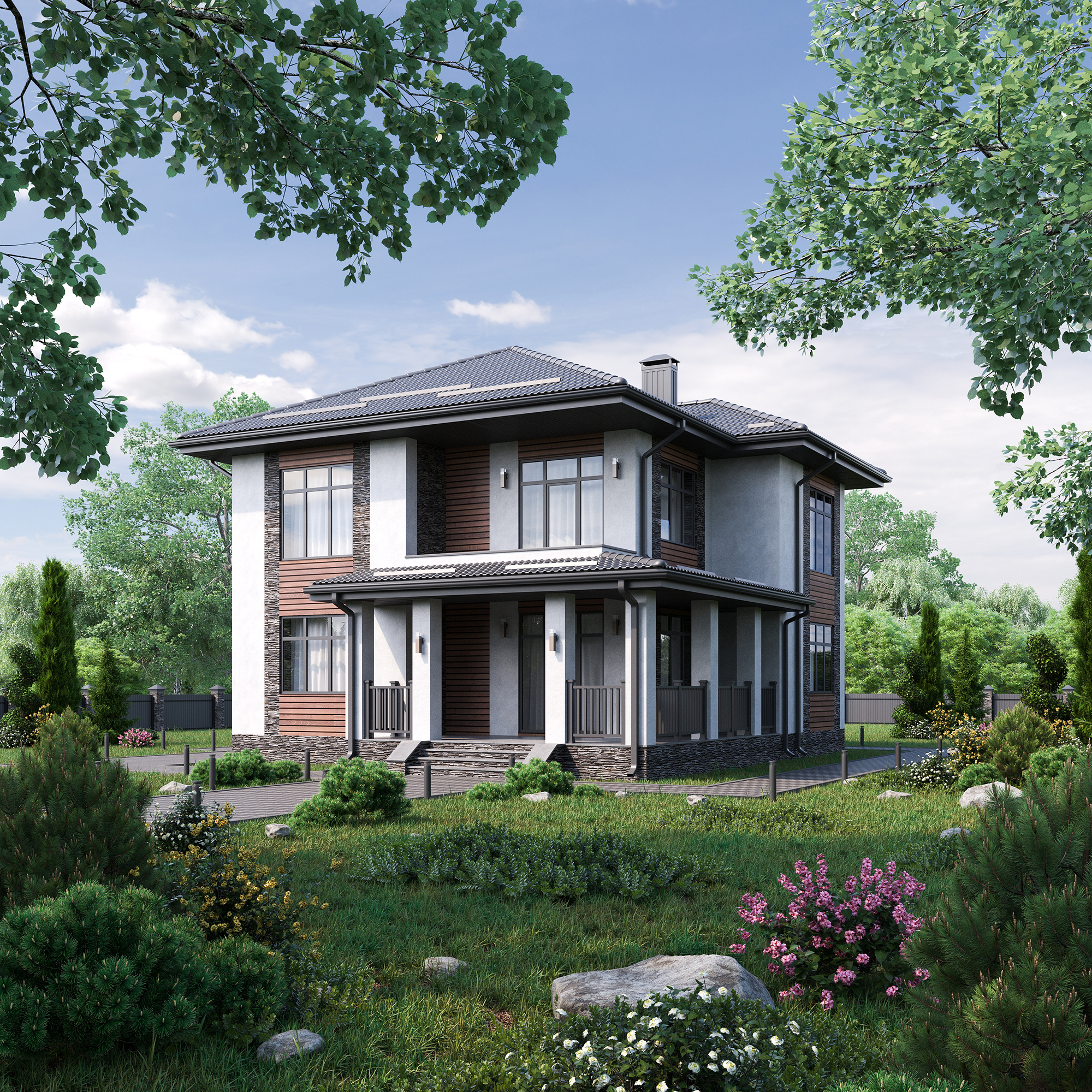 Визуализация фасадного решения типового проекта для строительной компании. Оригинальные изображения: 3ds max + Corona Обработка: SD