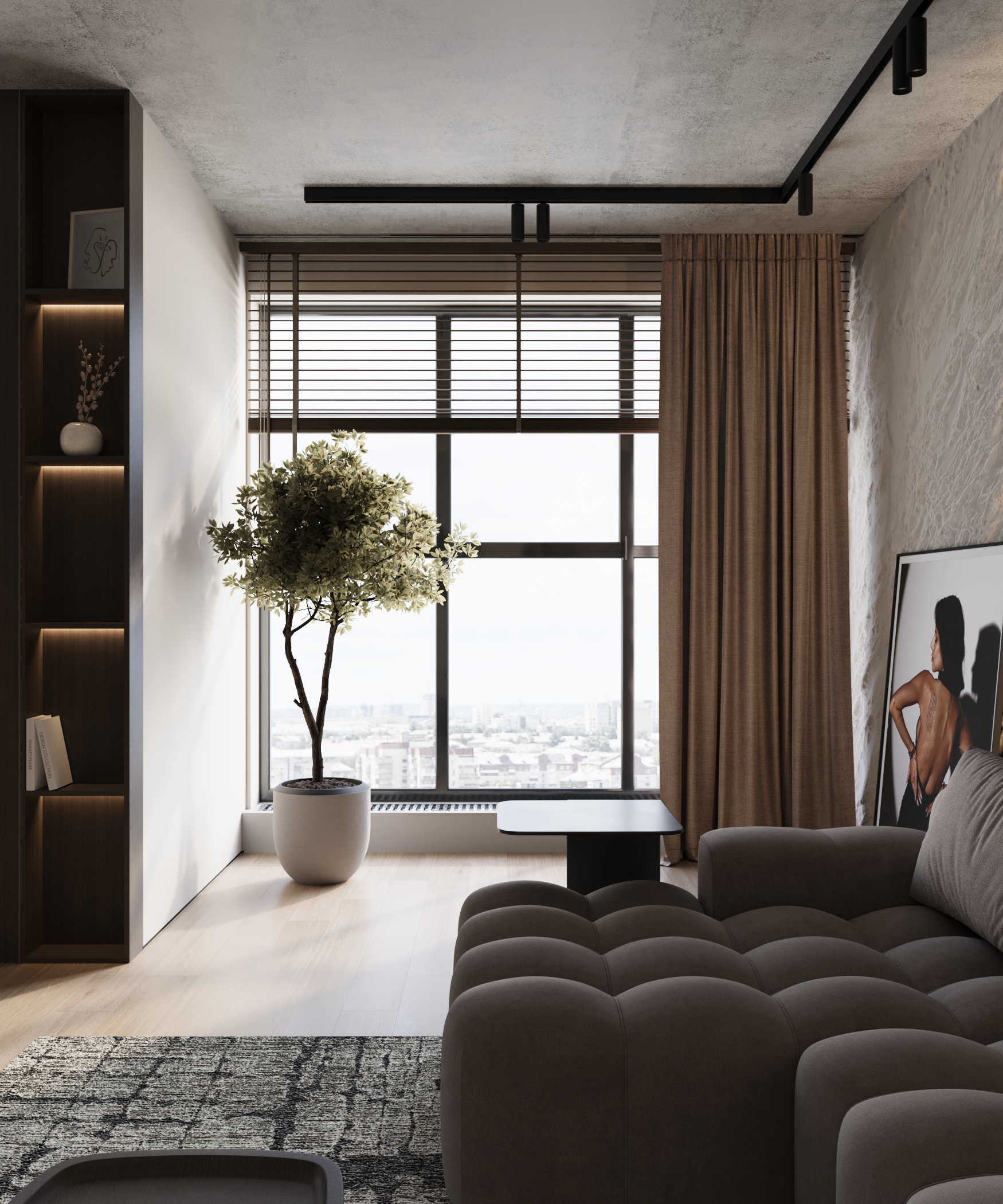 Этот интерьер идеально сочетает комфорт и эстетику, делая квартиру идеальным местом для отдыха и вдохновения.