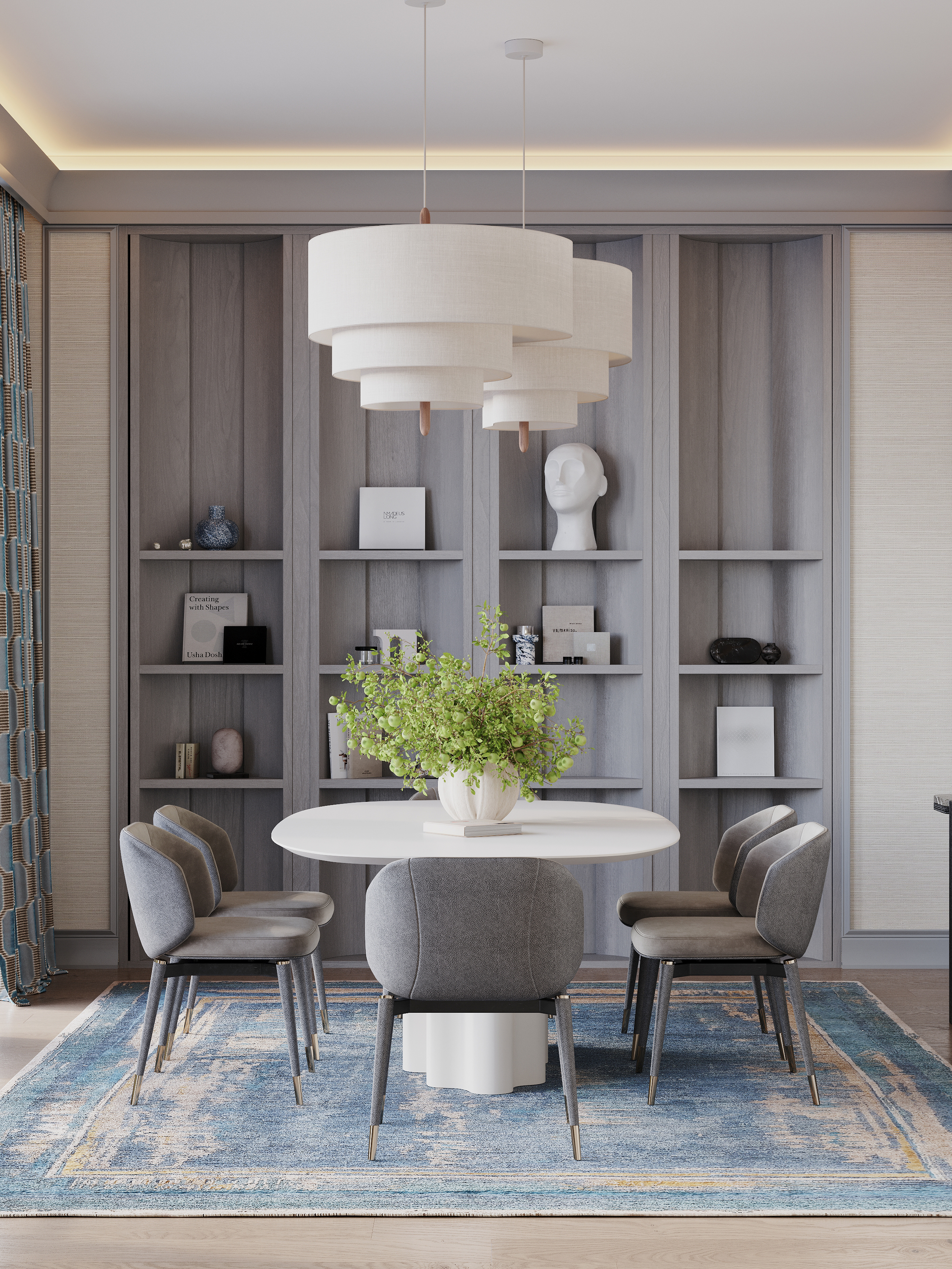 Визуализация кабинета в оттенках василька...