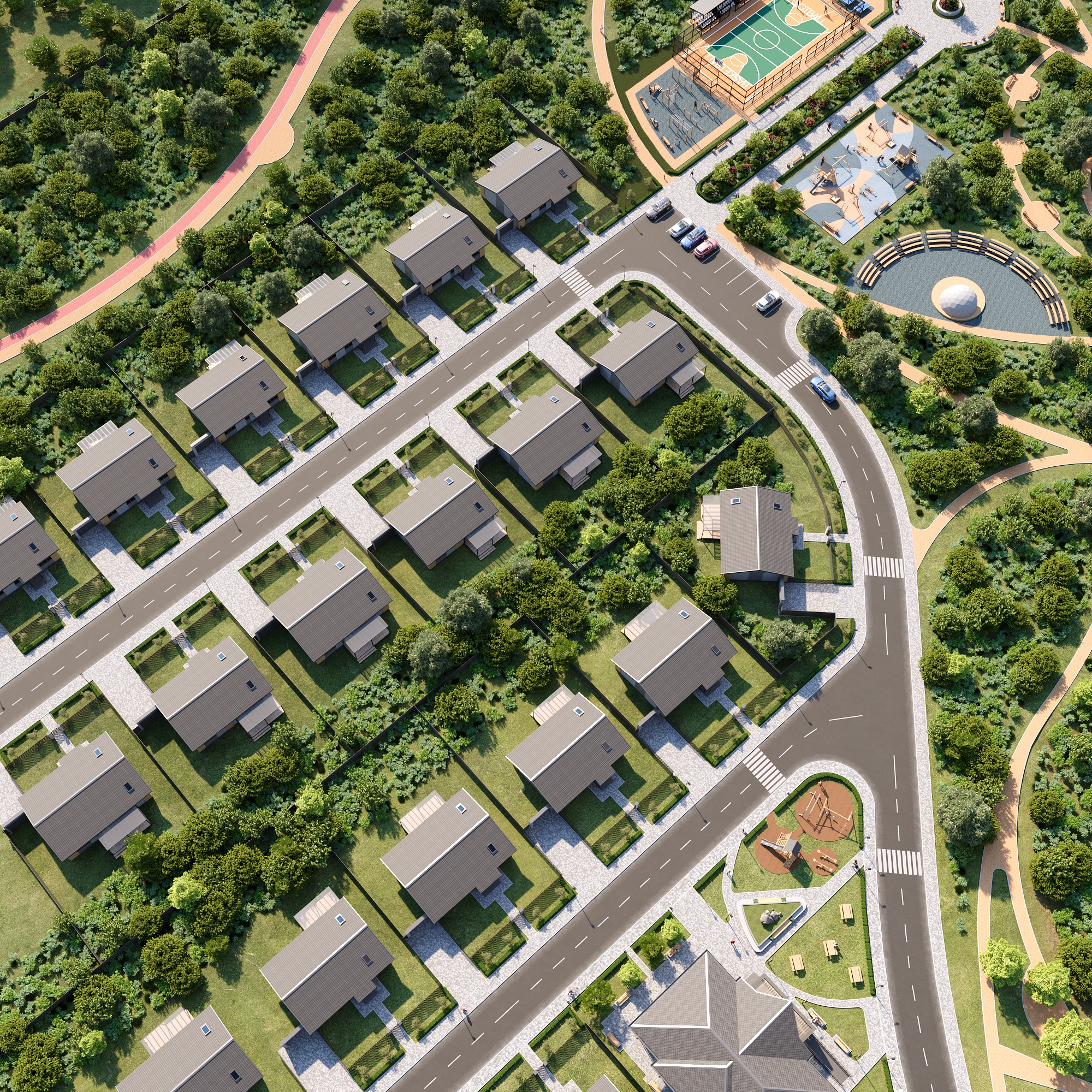 Визуализация коттеджного поселка для строительной компании. 3ds max + Corona.