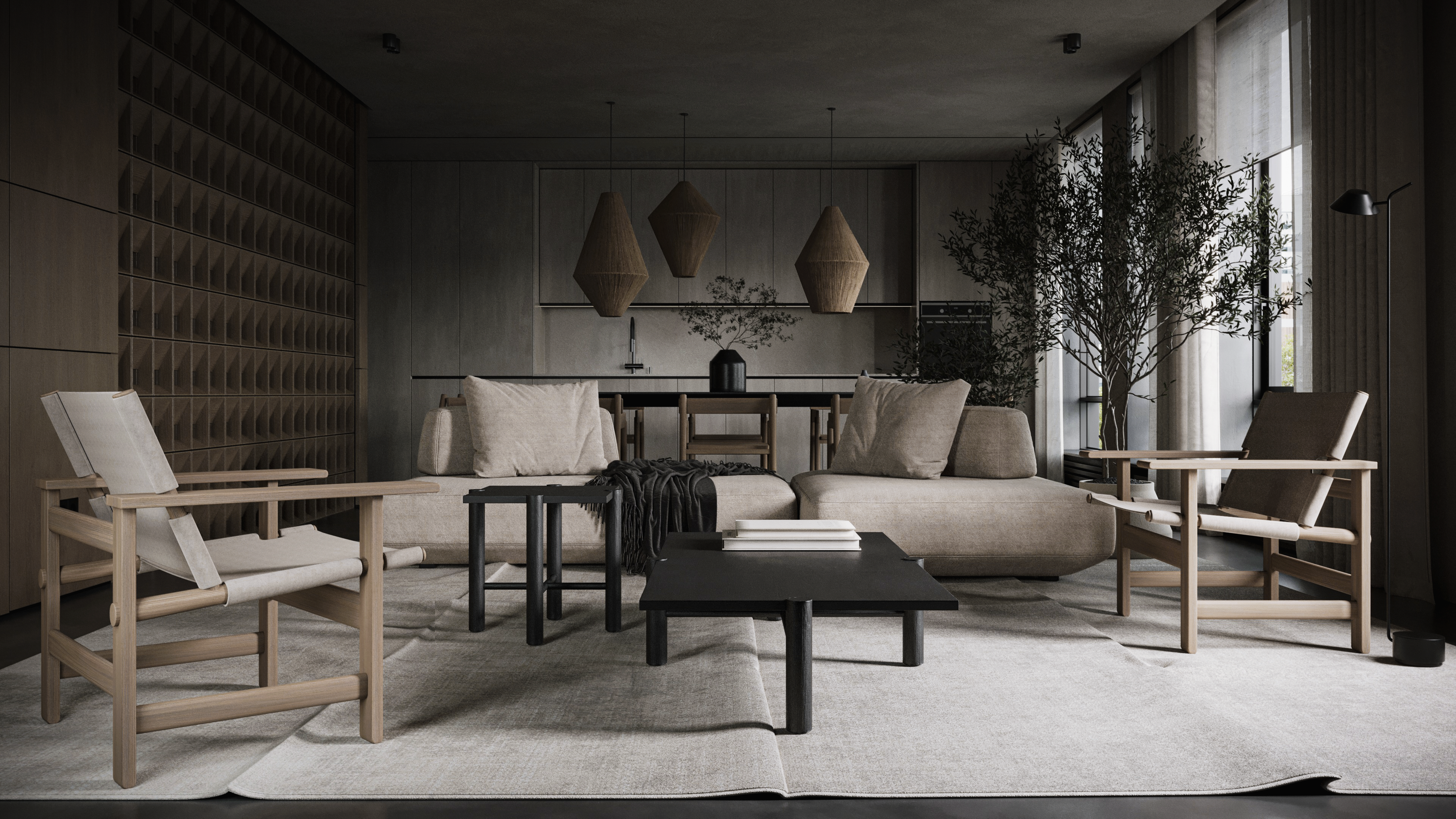 Визуализация кухни-гостиной и спальни