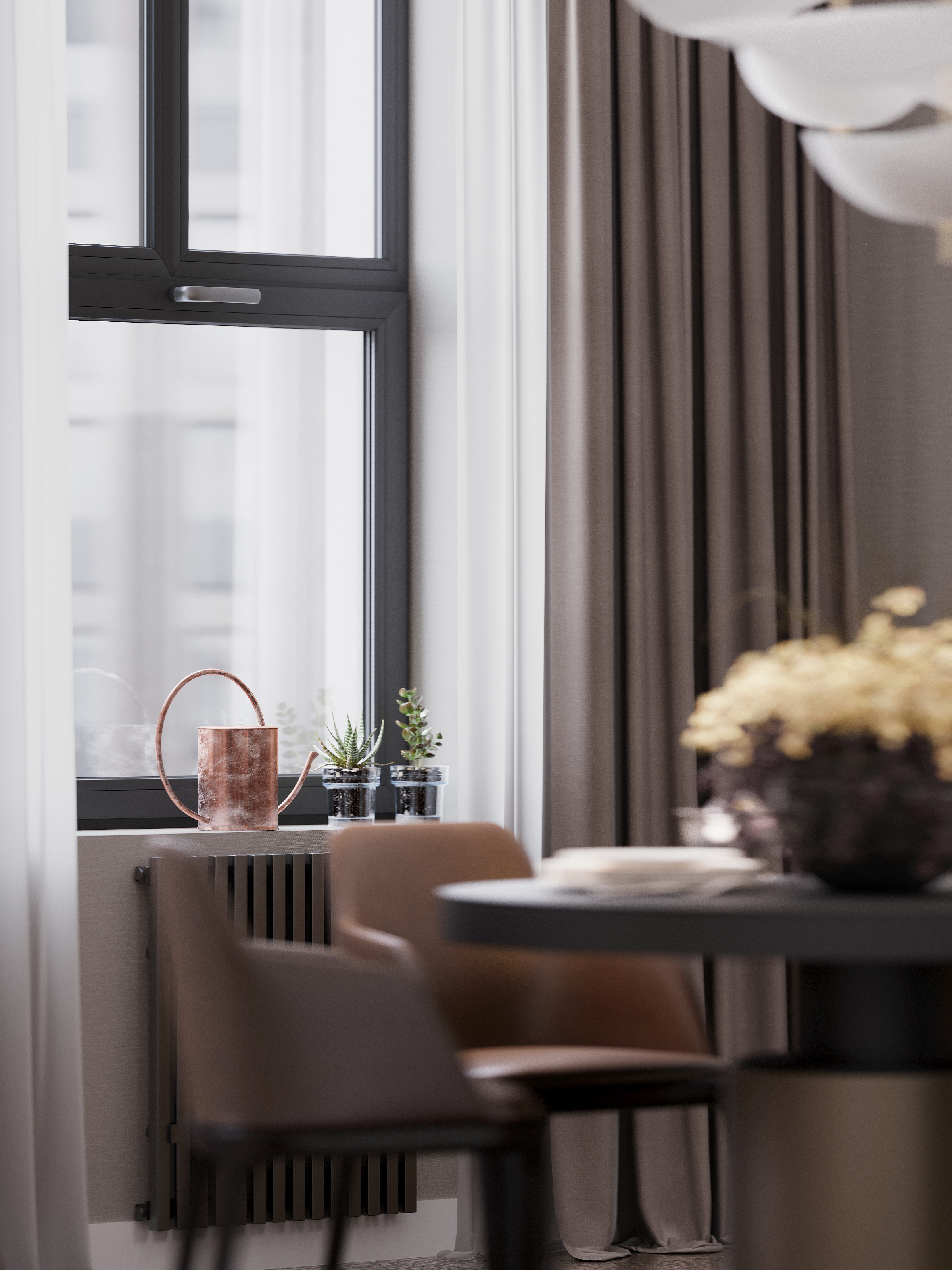Визуализация кухни,гостиной,зоны отдыха в оттенках сепии...3d max, Corona Render, Photoshop