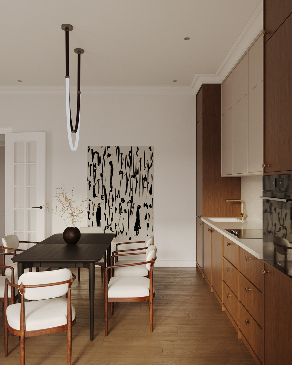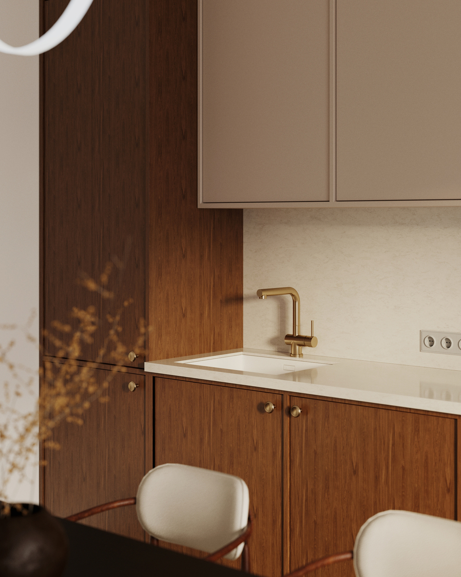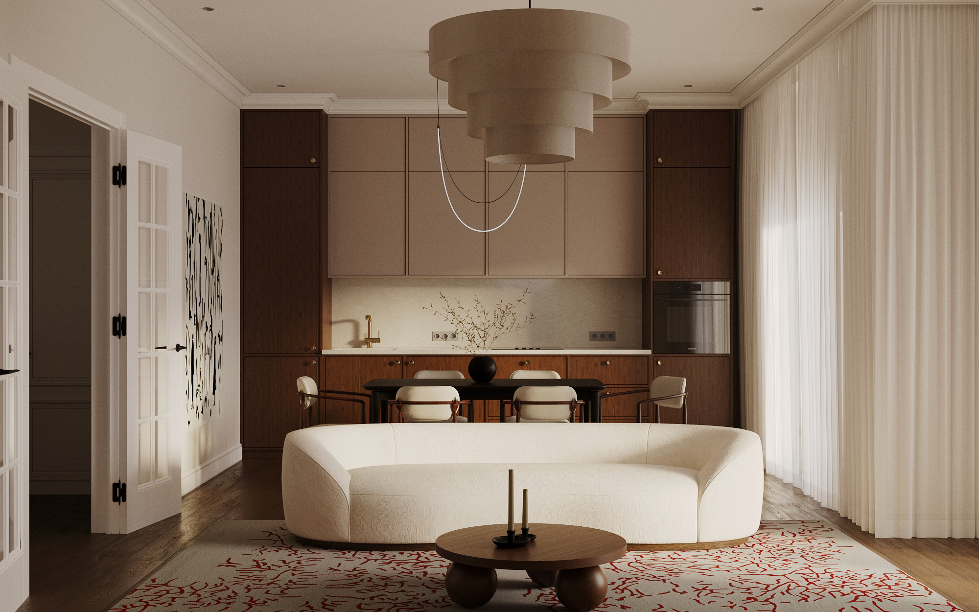 Проект квартиры создан для портфолио по собственному дизайну. Основной задачей проекта было показать не только функциональность зон, но и уют, тепло и комфорт.