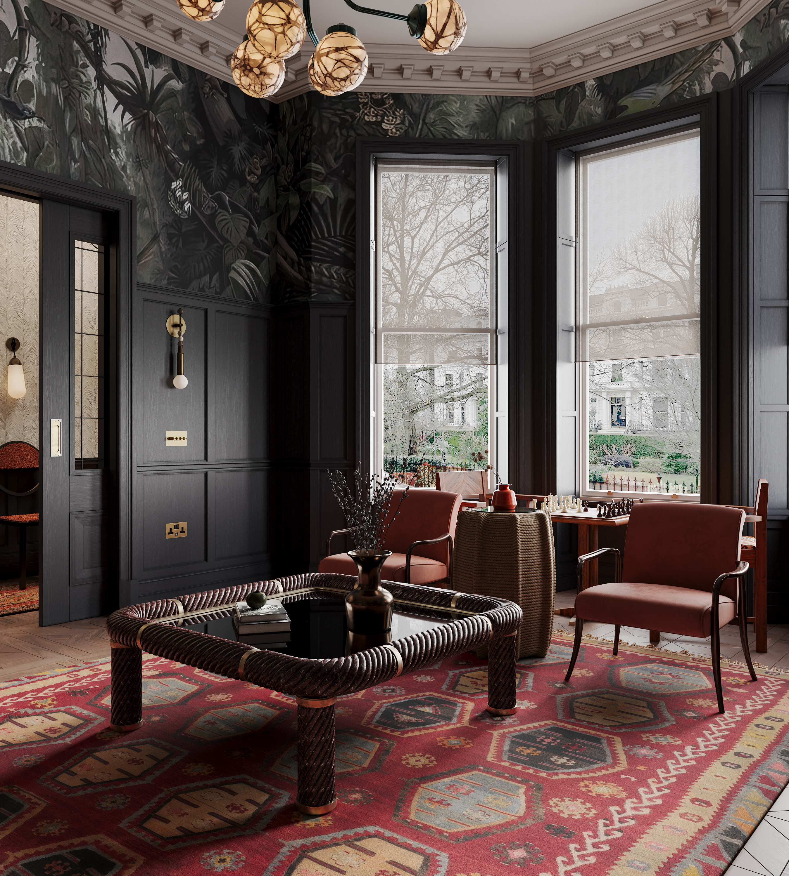 Визуализация дизайн проекта, разработанного студией Property of London Design Atelier. Настоящая английская квартира, на мой взгляд) Почти нет готовых моделей с 3ddd, кроме декора. Работали в паре с моделлером, создавая коллекционные предметы мебели