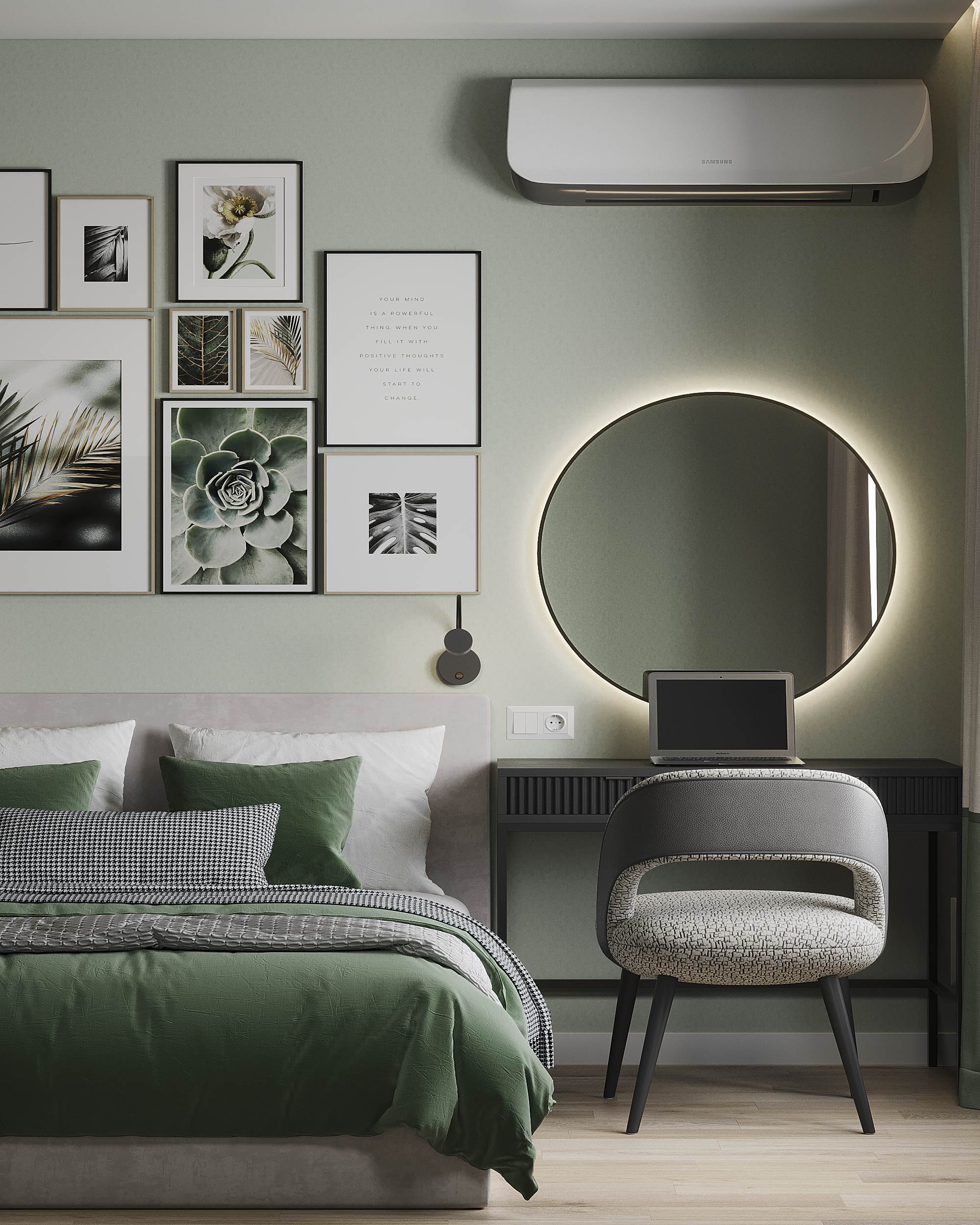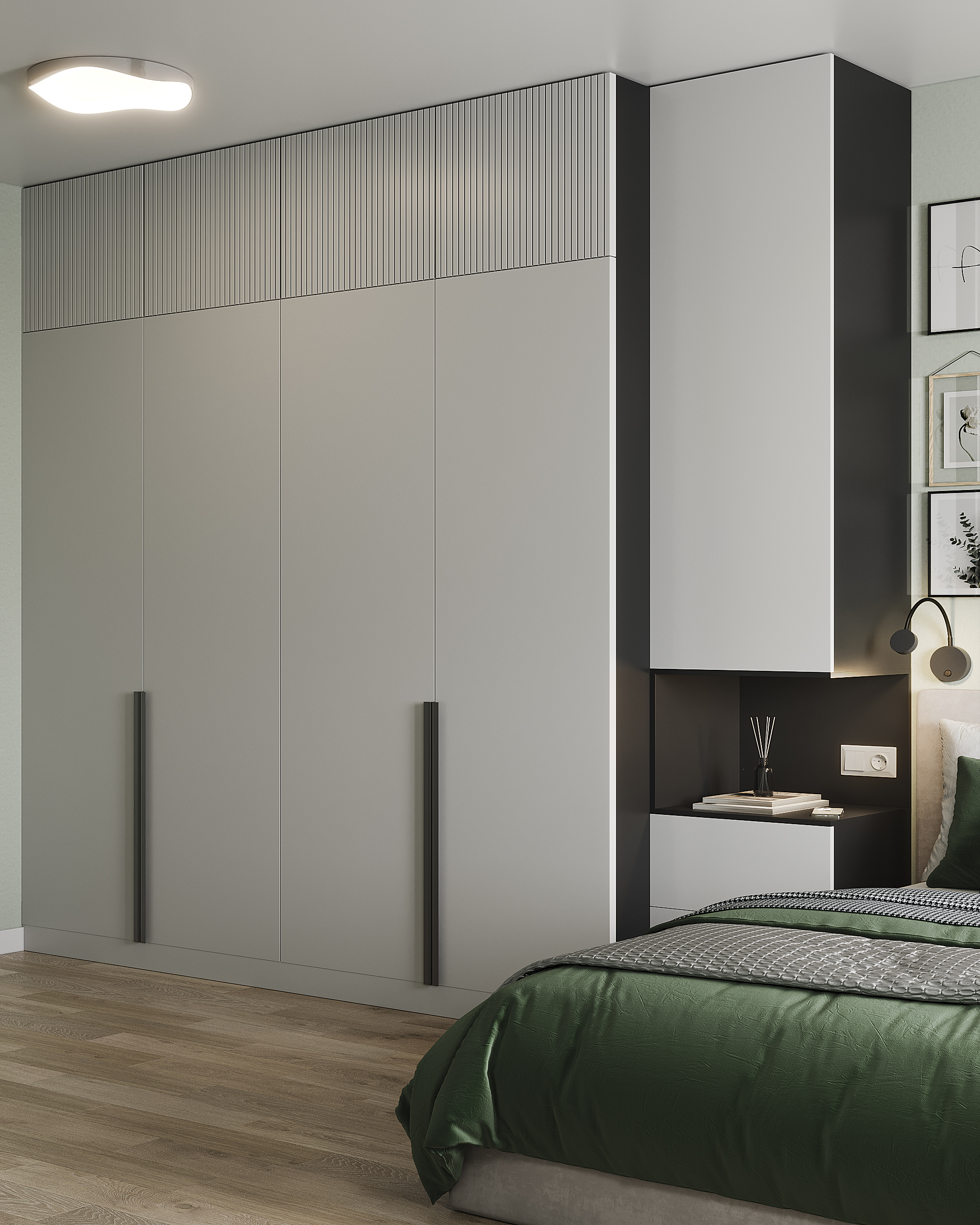 Спальня с акцентом на тёмно-зелёный цвет __________ Дизайн: