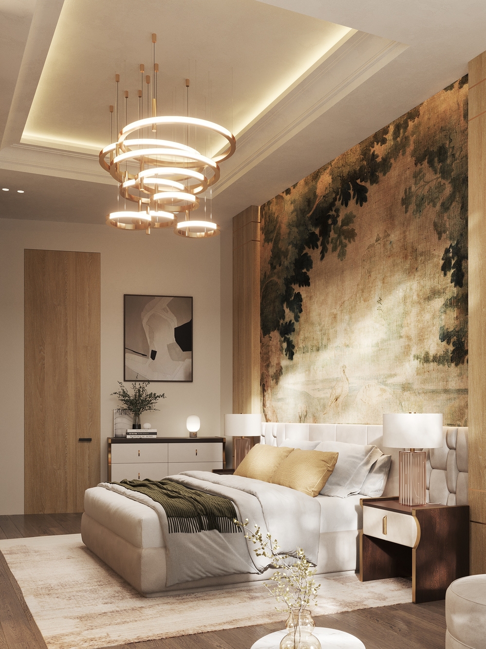 Визуализация спальни в современном стиле. Soft: 3ds max, corona render, photoshop