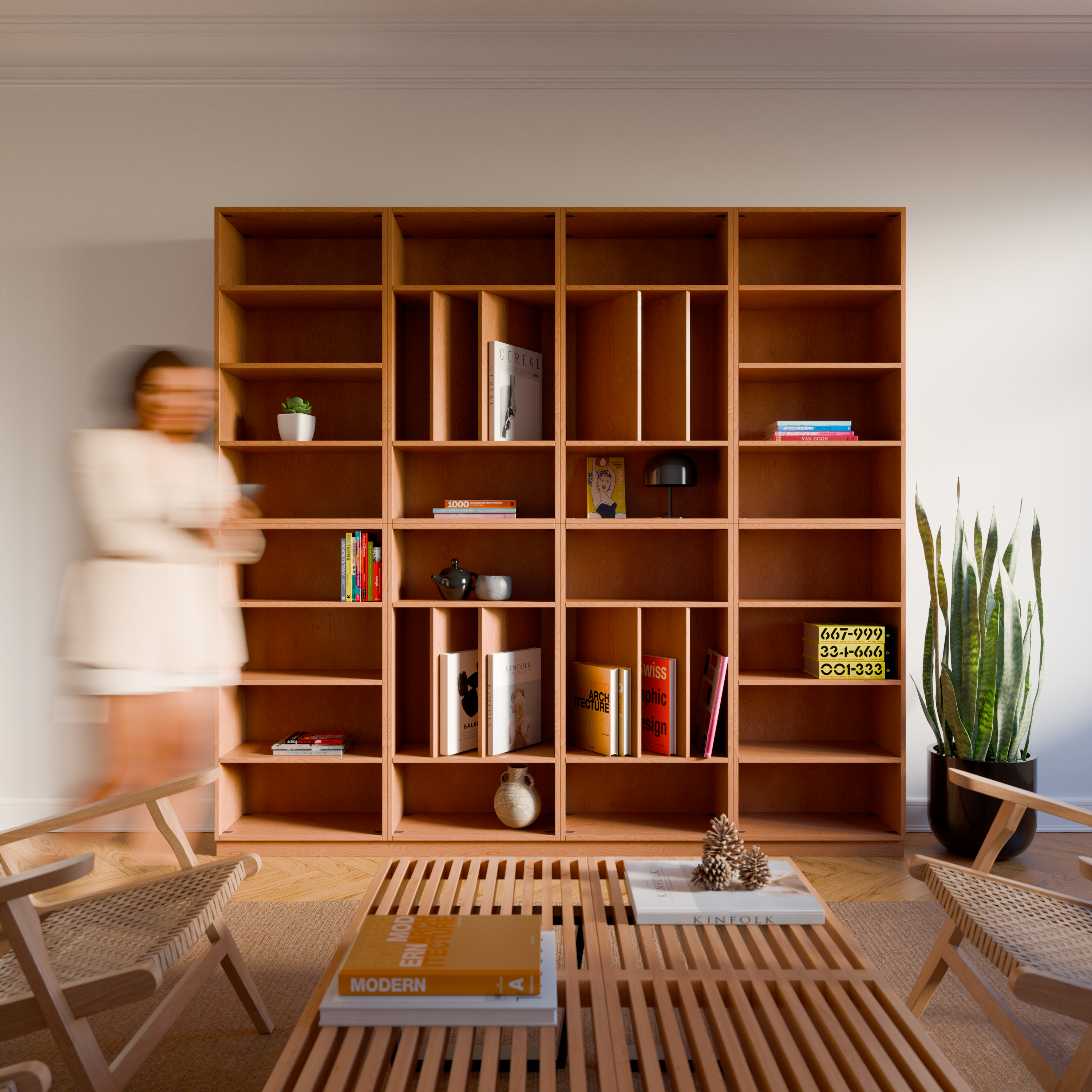 Клиенту нужно было показать четыре разных комбинации стеллажей в четырех разных отделках. все выполнено в Blender 4.4, рендер Cycles часть моделей импортировал из Хаос Космос, через 3д макс.