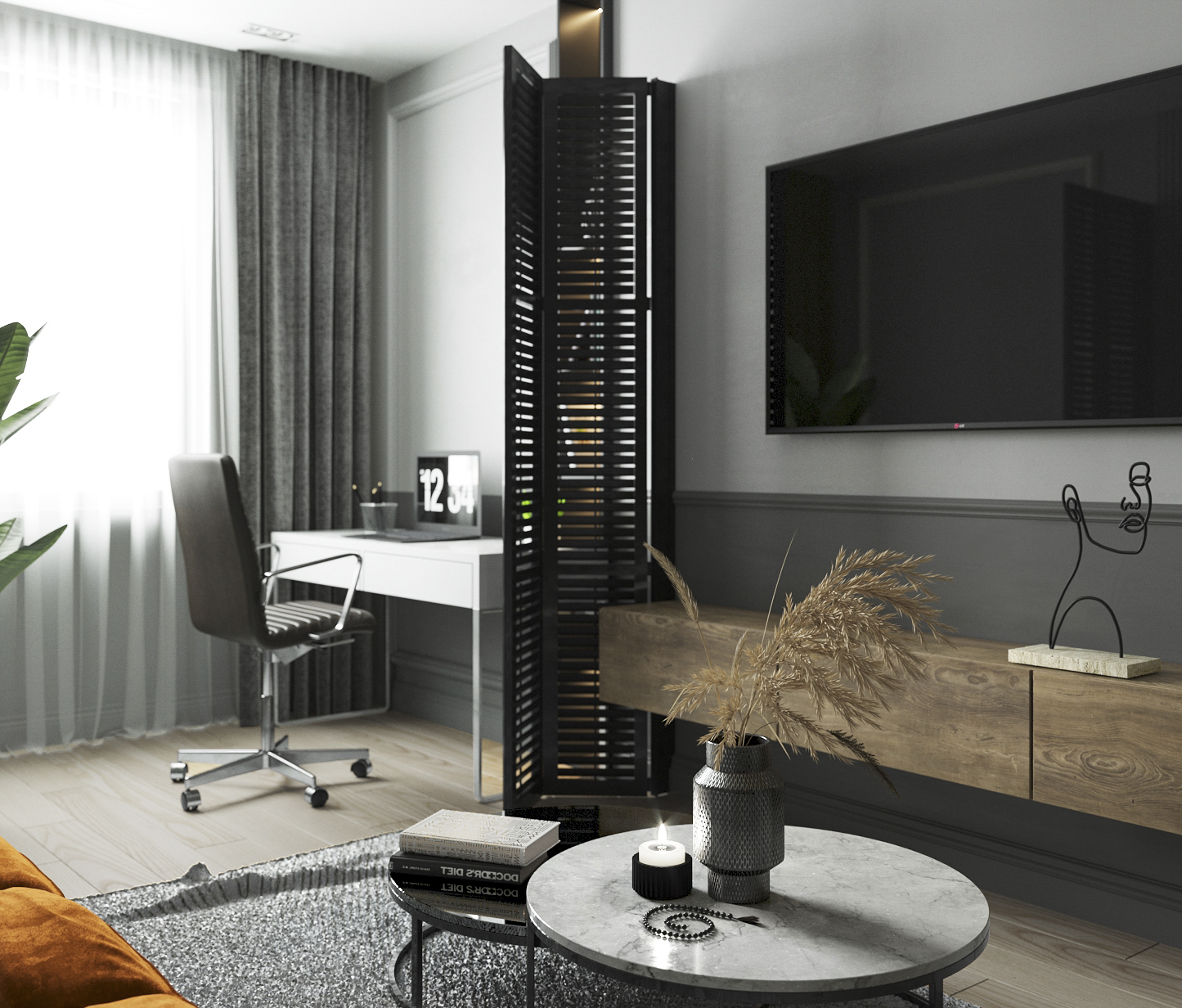 На втором ракурсе беда с ковром, шторы растут из потолка, отсутствует радиатор отопления