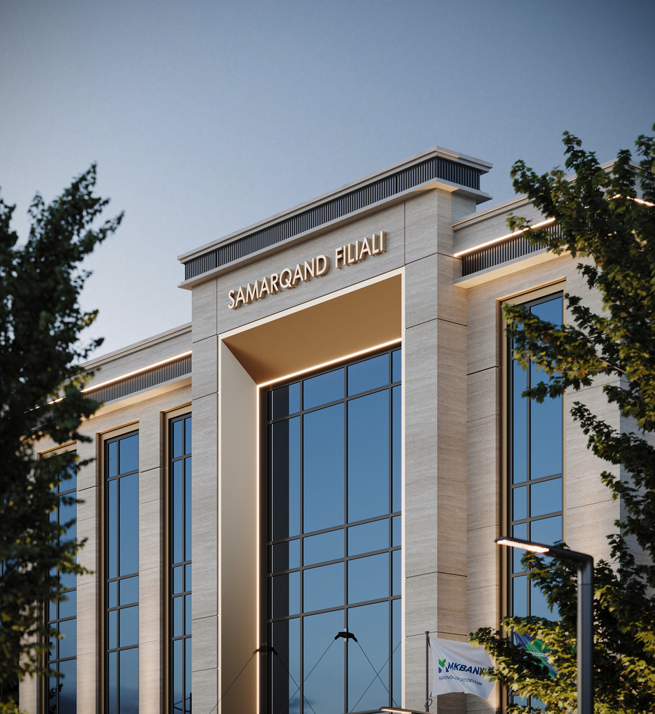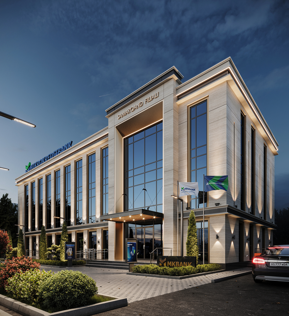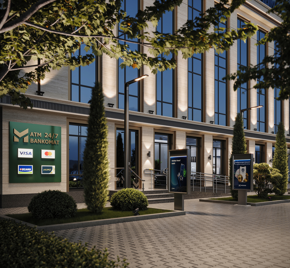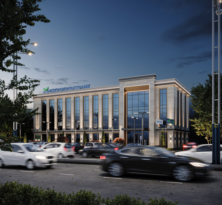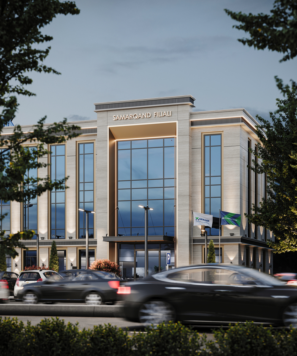 Визуализация здания банка. Программы: 3D Max 2023 corona 9.0