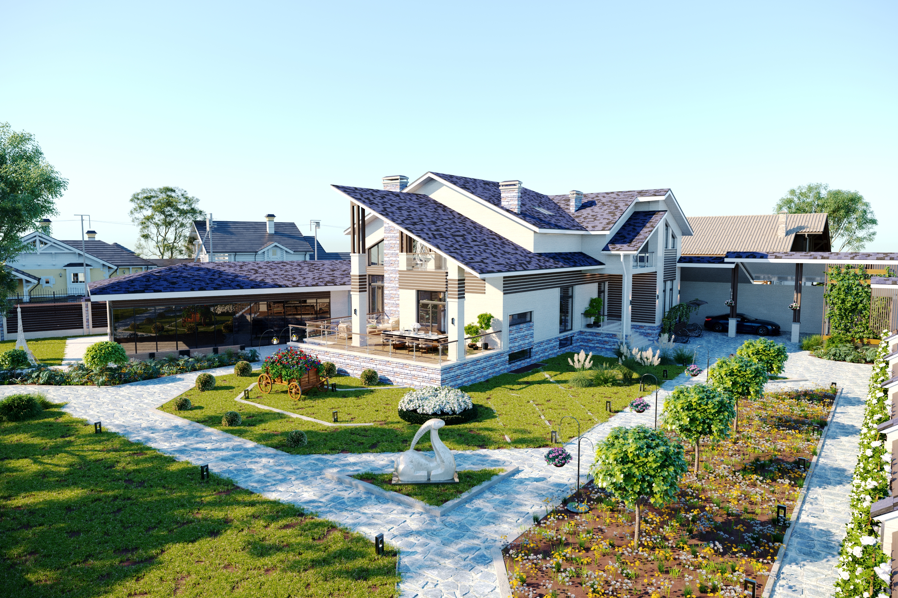 Домик разрабатывался по существующим материалам, из-за этого текстура беспощадно повторяется.