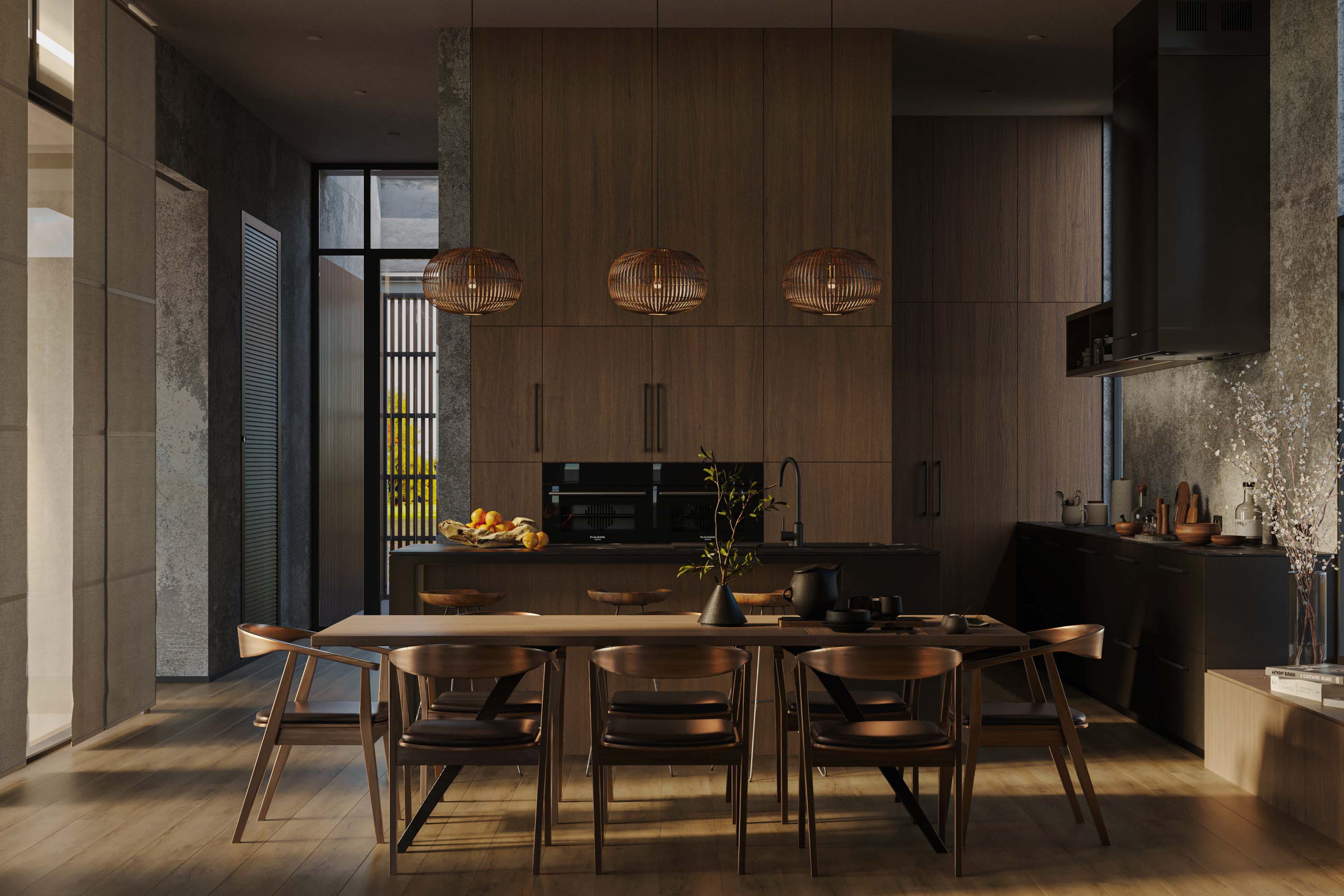 Дизайн интерьера кухни-столовой в японском стиле. 3Ds Maxs, Corona Render, Photoshop