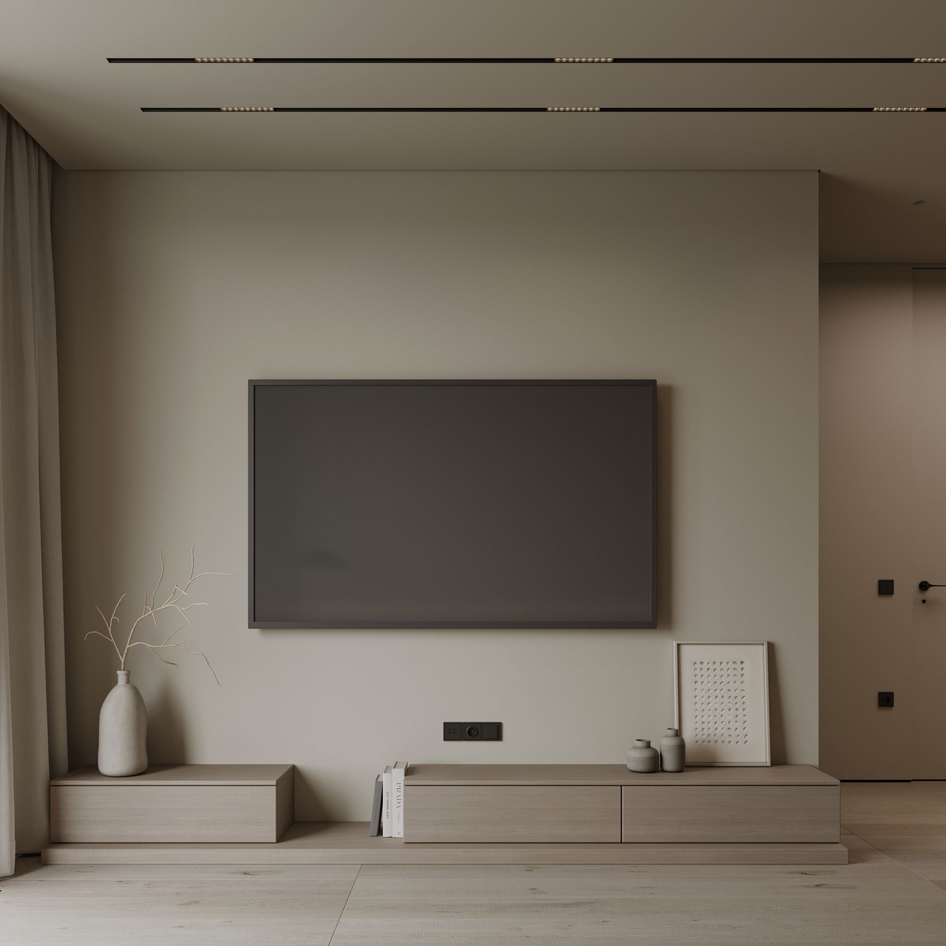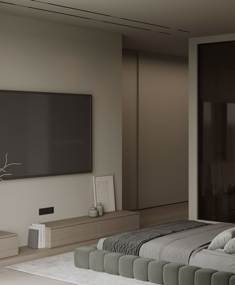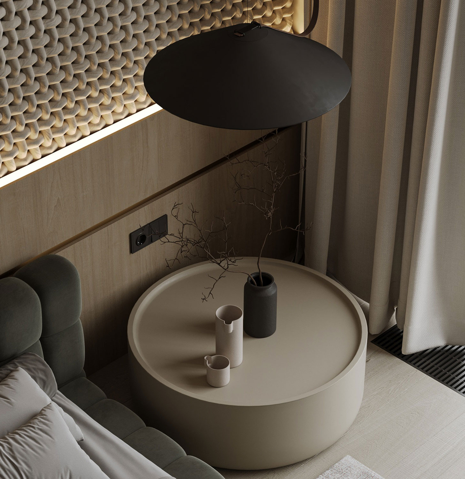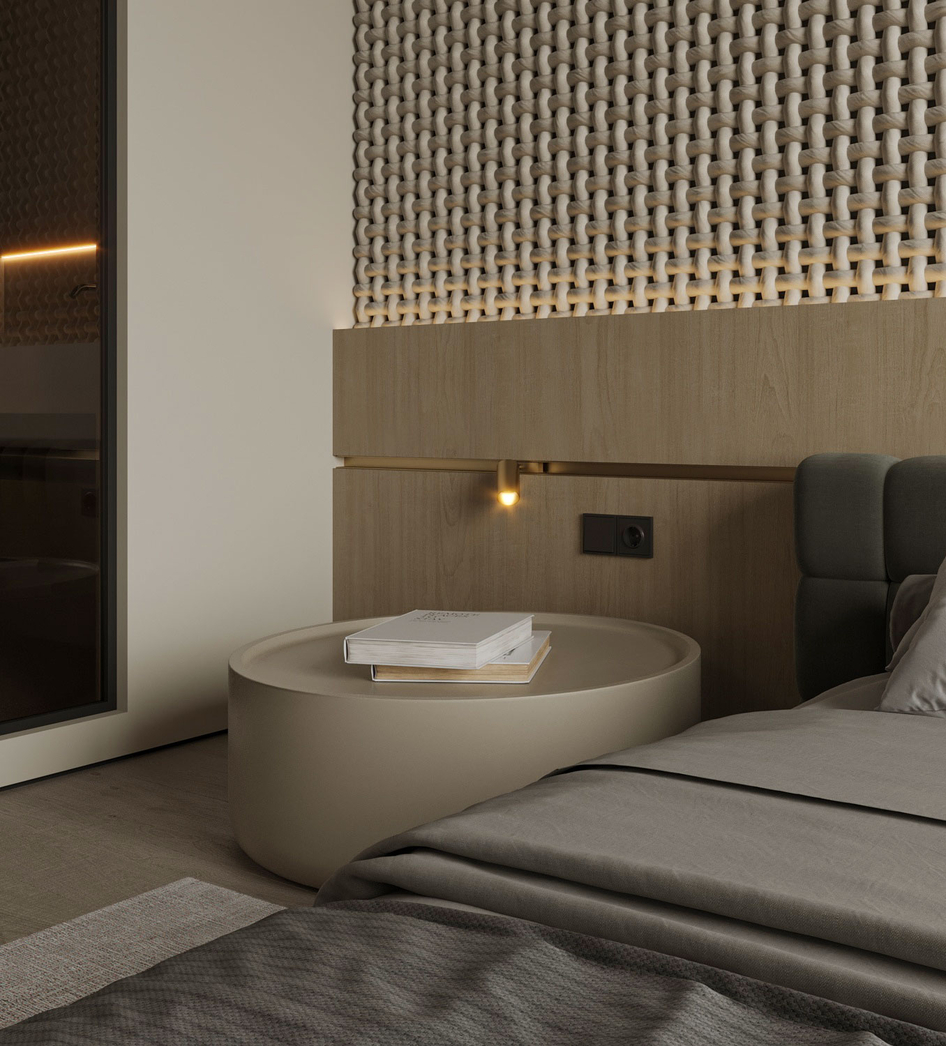 We often showcase designs for large spaces, but this project stood out as very interesting and cozy. It’s a small, comfortable flat with a bedroom, living room, kitchen, and plenty of storage space. The combination of wood and warm tones creates a unique interplay with lighting.