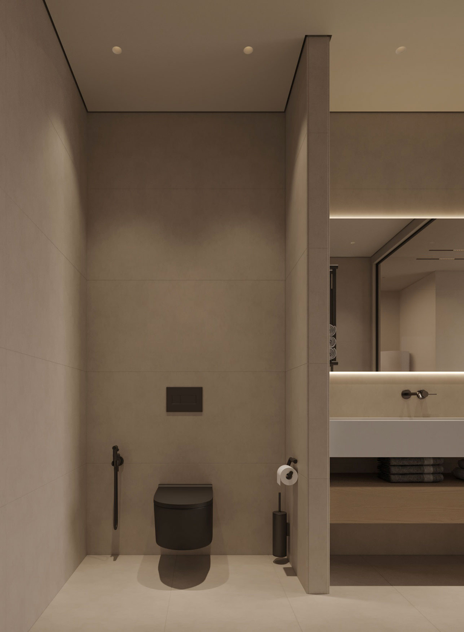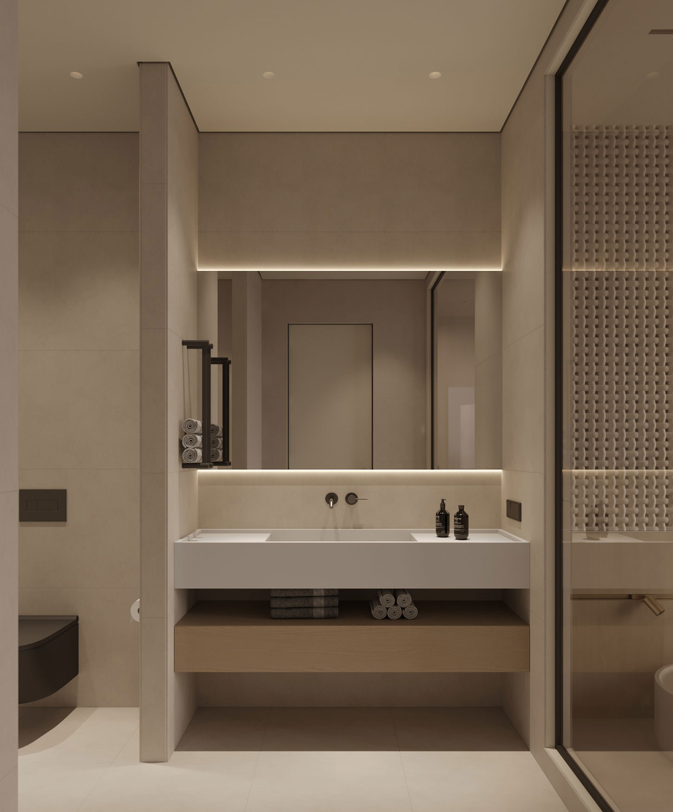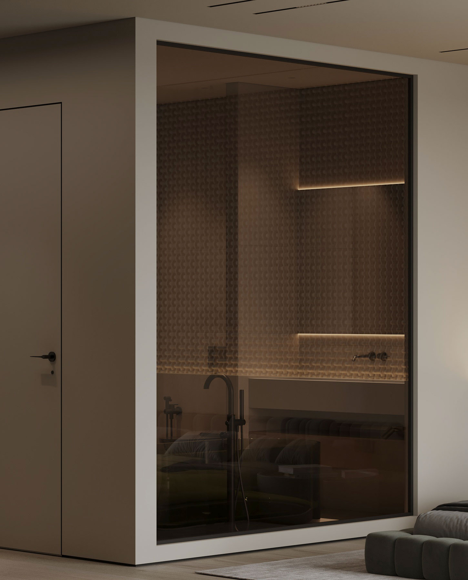 We often showcase designs for large spaces, but this project stood out as very interesting and cozy. It’s a small, comfortable flat with a bedroom, living room, kitchen, and plenty of storage space. The combination of wood and warm tones creates a unique interplay with lighting.