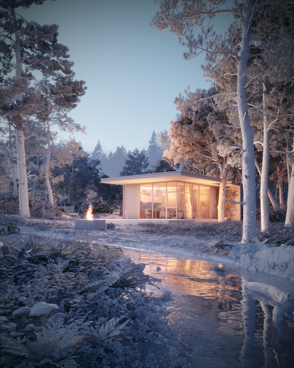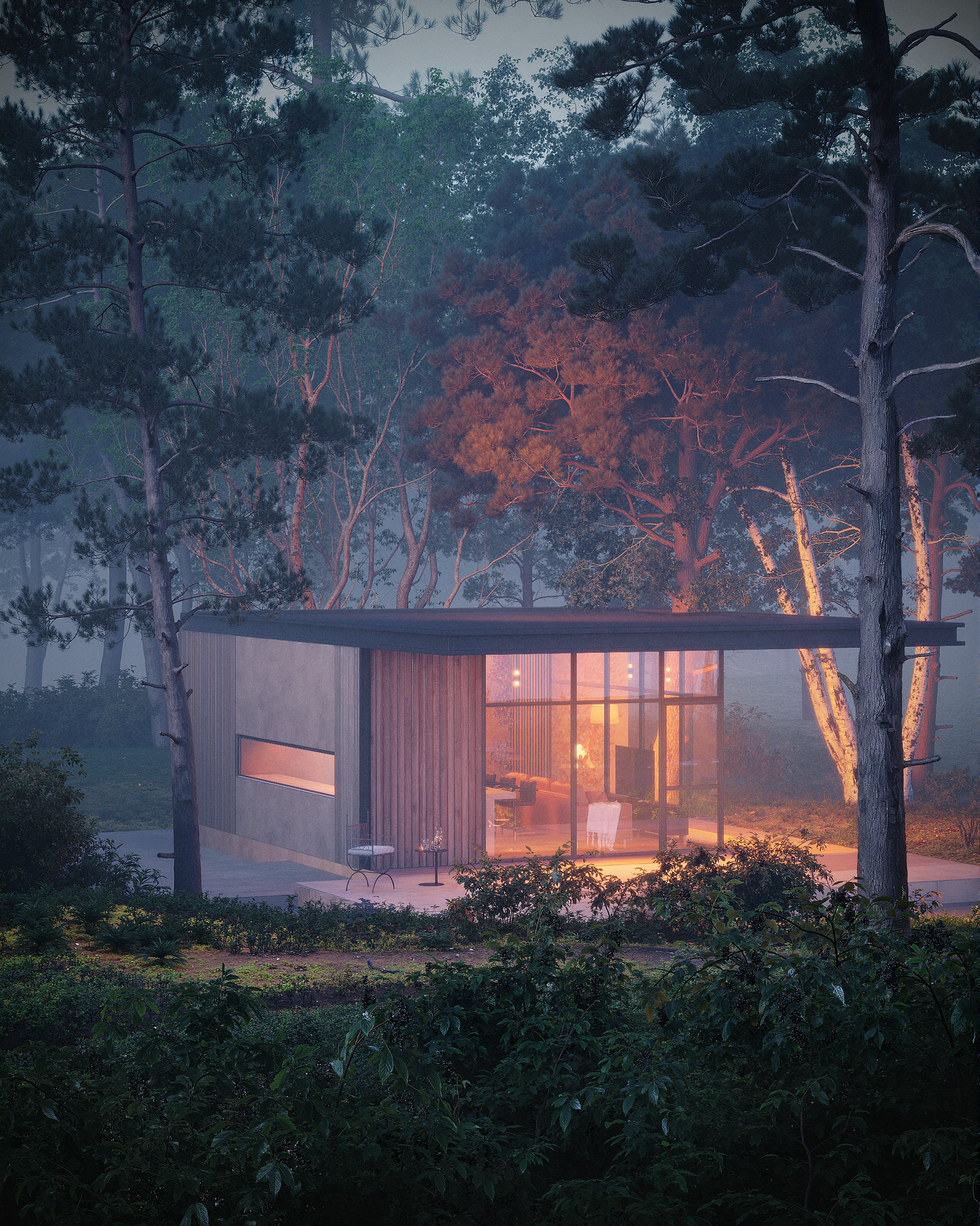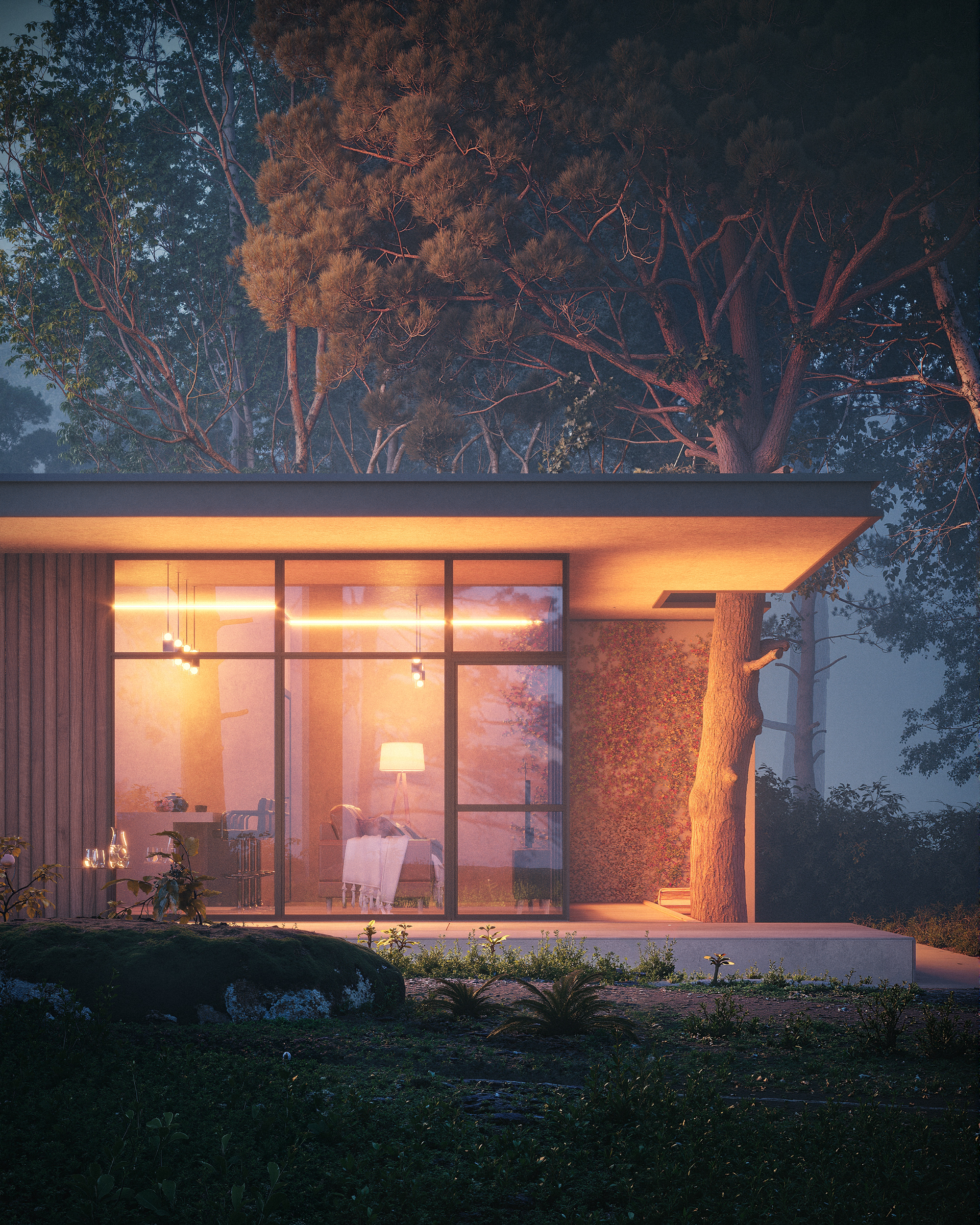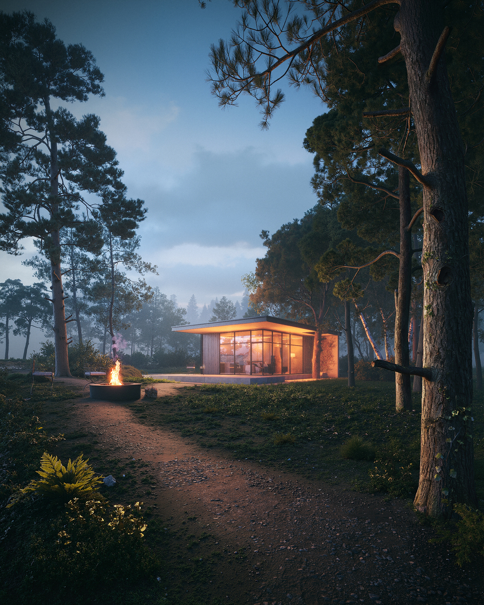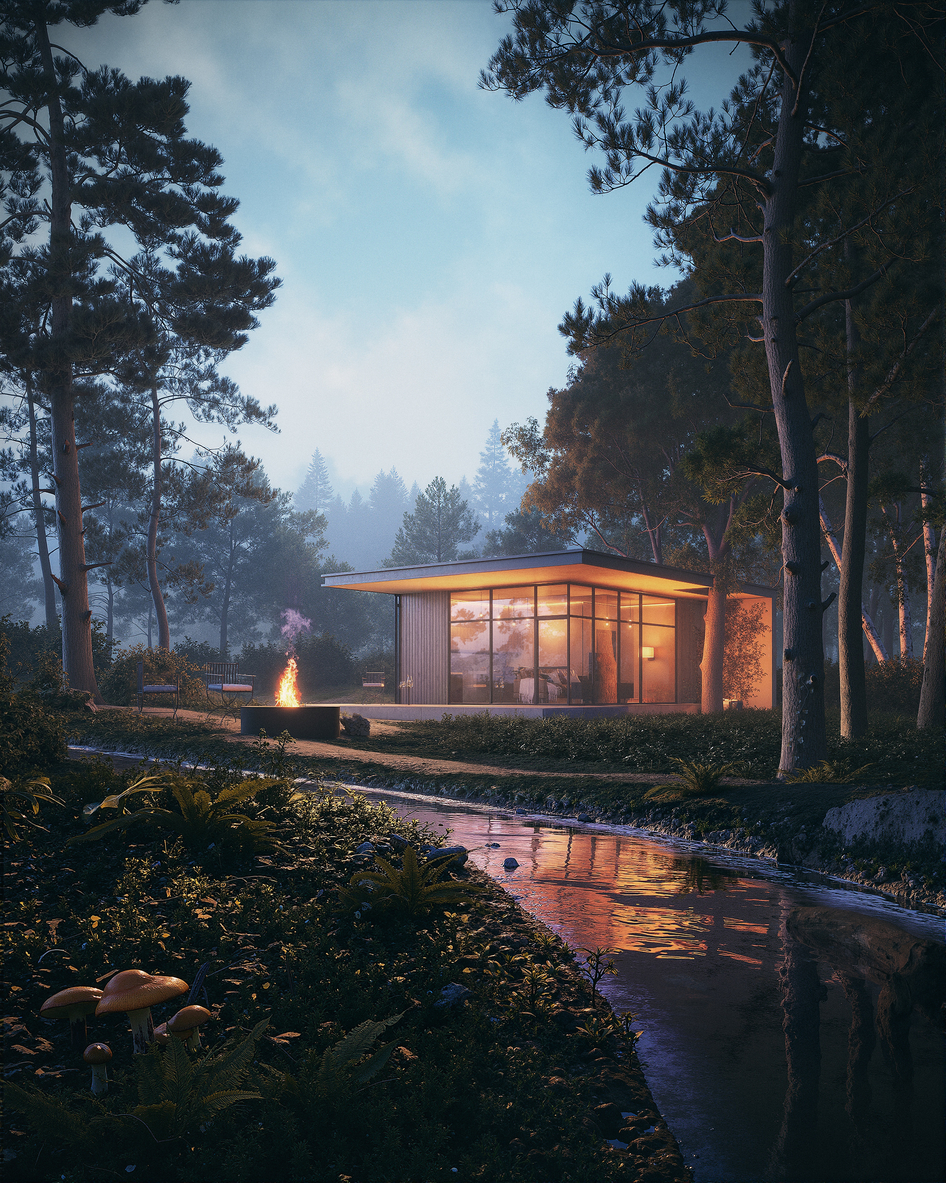 Делая коммерческую визуализацию (моя предыдущая работа с пустыней), сначала был запрос сделать лес, но позднее задача поменялась, и сцена с лесом осталась в столе.
