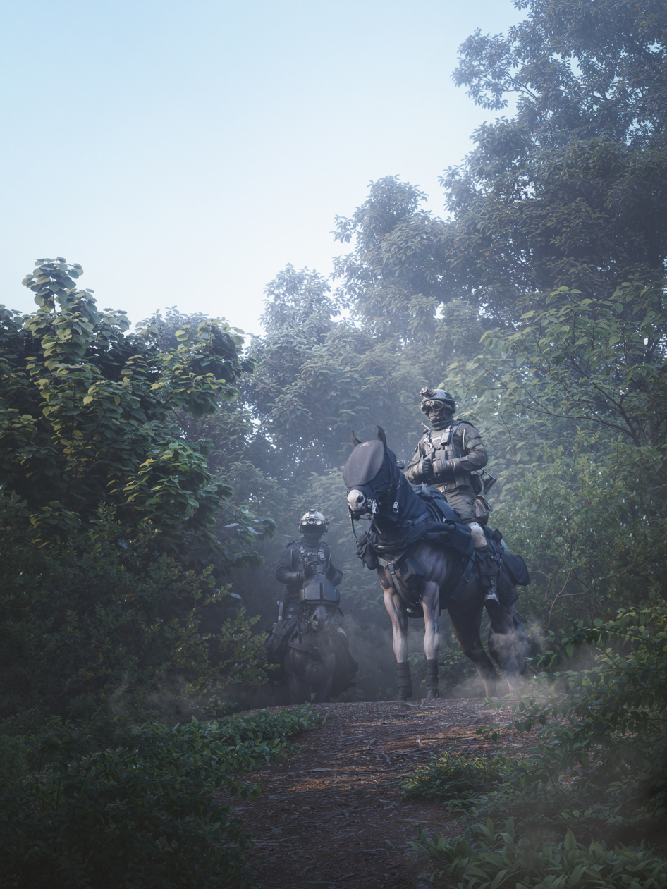Лошадей так паковать, мне кажется не целесообразно, у них очень сильная тепловая сигнатура, спалят этих ребят задолго до визуального контакта, уместнее уже роболошадей или робособак использовать в паре с андроидами на них. Роль человека в войне стремительно уменьшается.