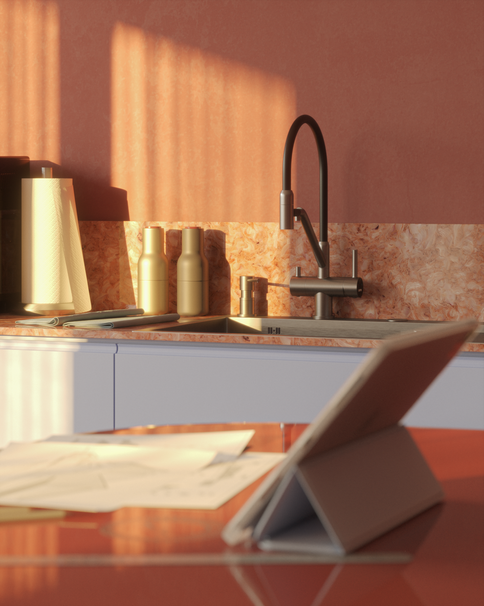 Обычный творческий проект кухни-гостинной, тут нет ничего нового.