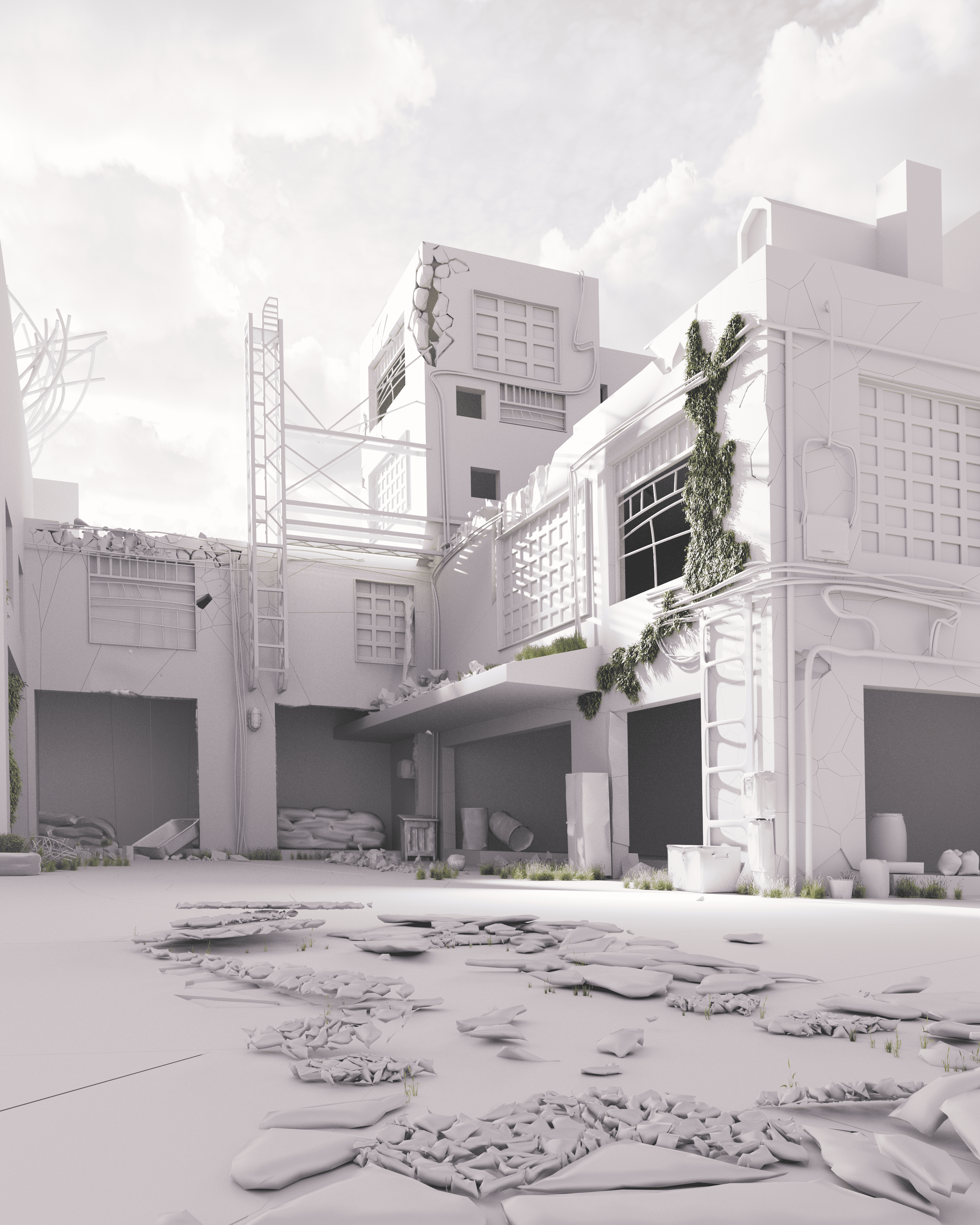Творческая работа выполнена в рамках обучения академии Грипинского. Задачей было отработать создание материалов в Substance, и закрепить инструмент Ray Fire. Сцена создана в 3dsMax, покрашена в Substance, разрушена в RayFire. От сермата до итогового рендера три итерации, сложность была с реалистичностью камней и разбитым асфальтом, методом проб и ошибок получился неплохой результат.