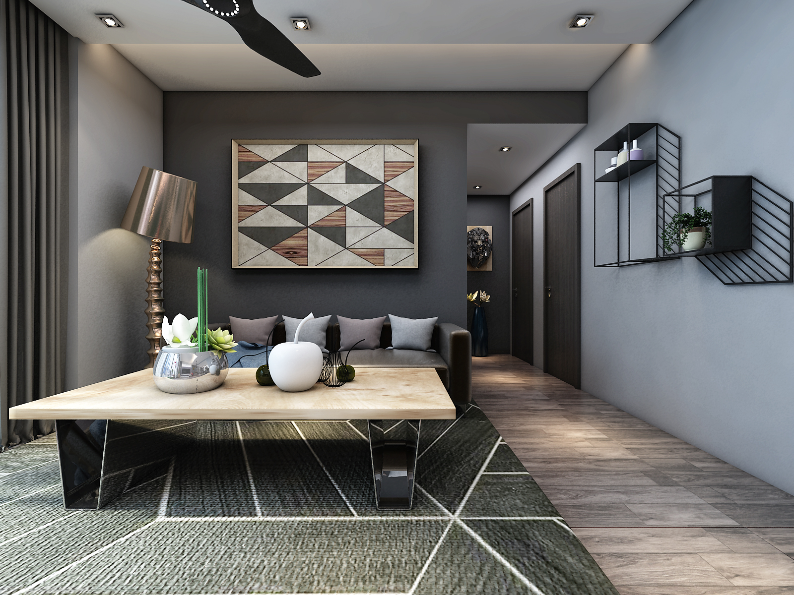Интерьер мне понравился - выверенная геометрия, сдержанные цвета, но, черт возьми, искаженная перспектива и правда все портит( Мебель кажется несоразмерной