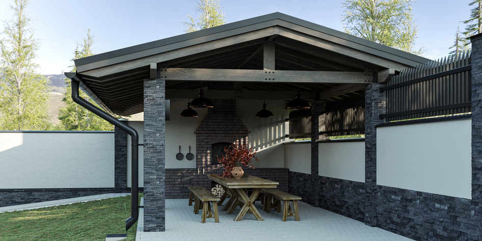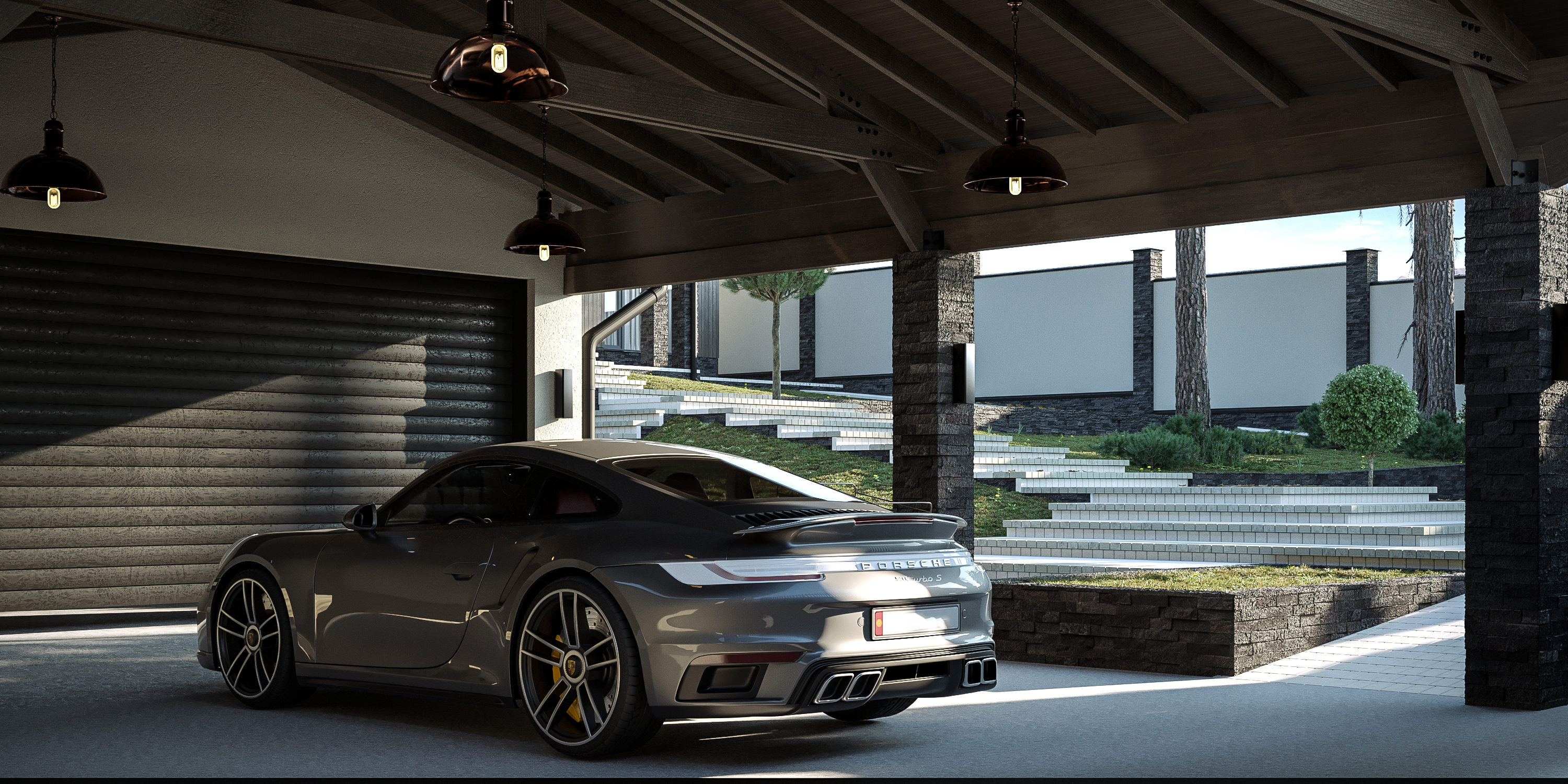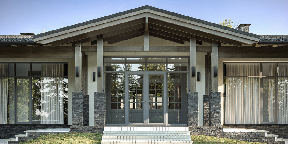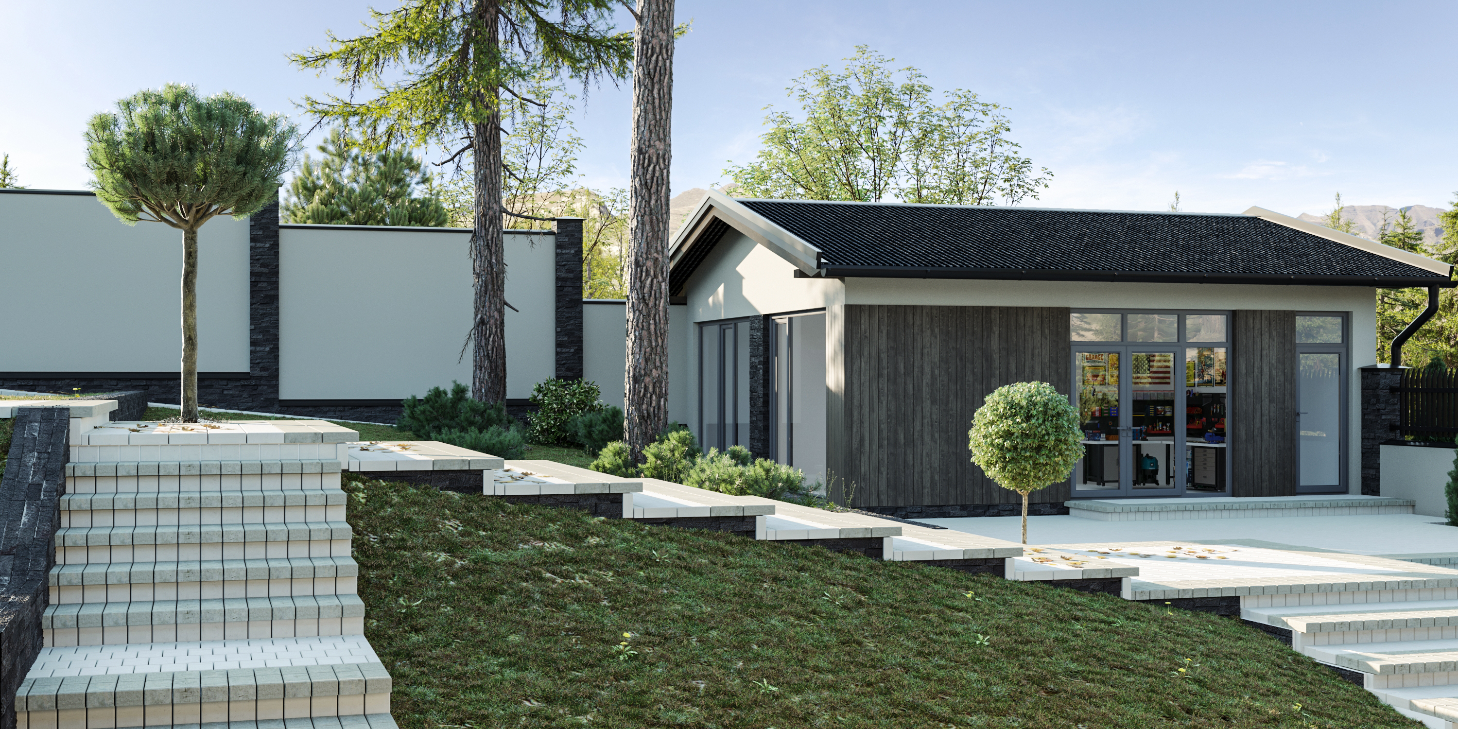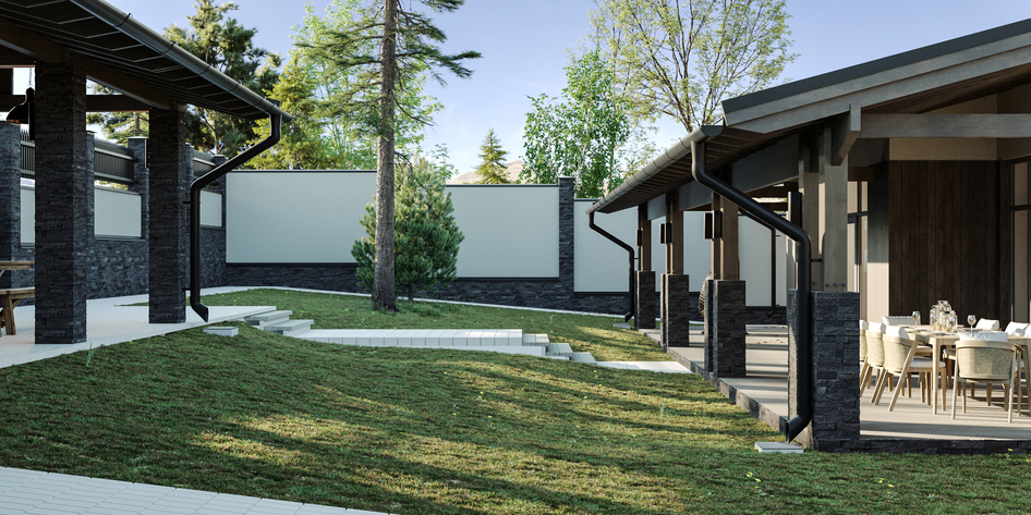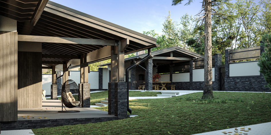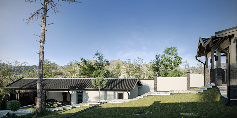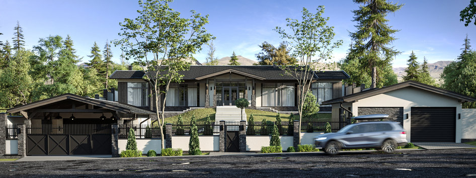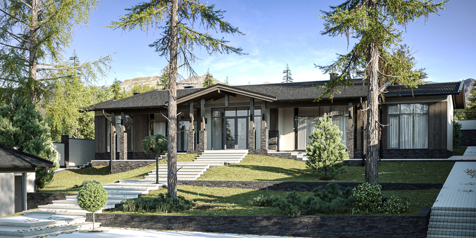 Визуализация загородного дома на склоне