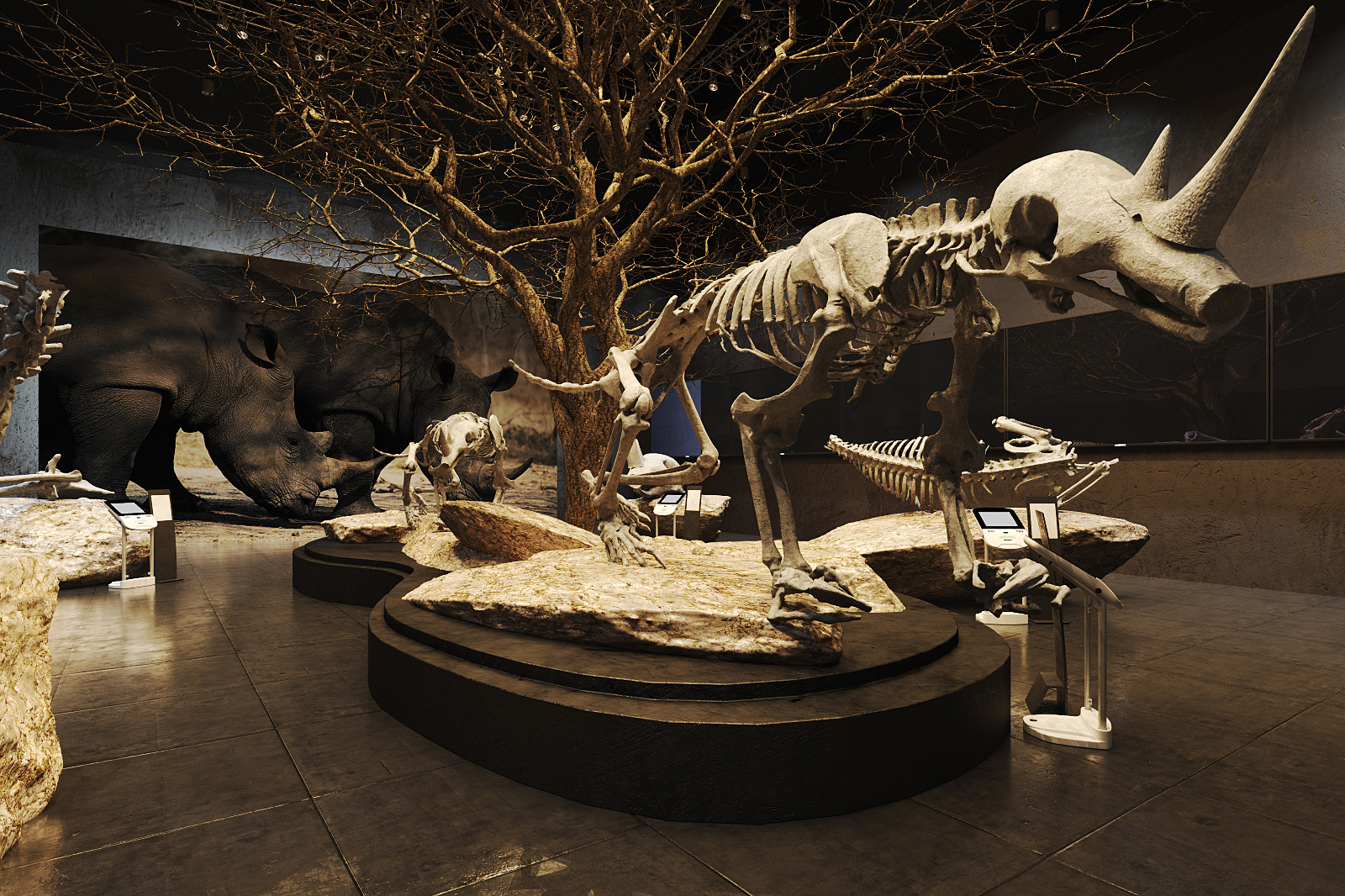Рога - "плотно сросшиеся волосовидные волокна", так что в музее их специально изготавливают и крепят на черепе, для полноты образа, потому что целых и хорошо сохранившихся рогов очень мало и на все музеи не хватает.