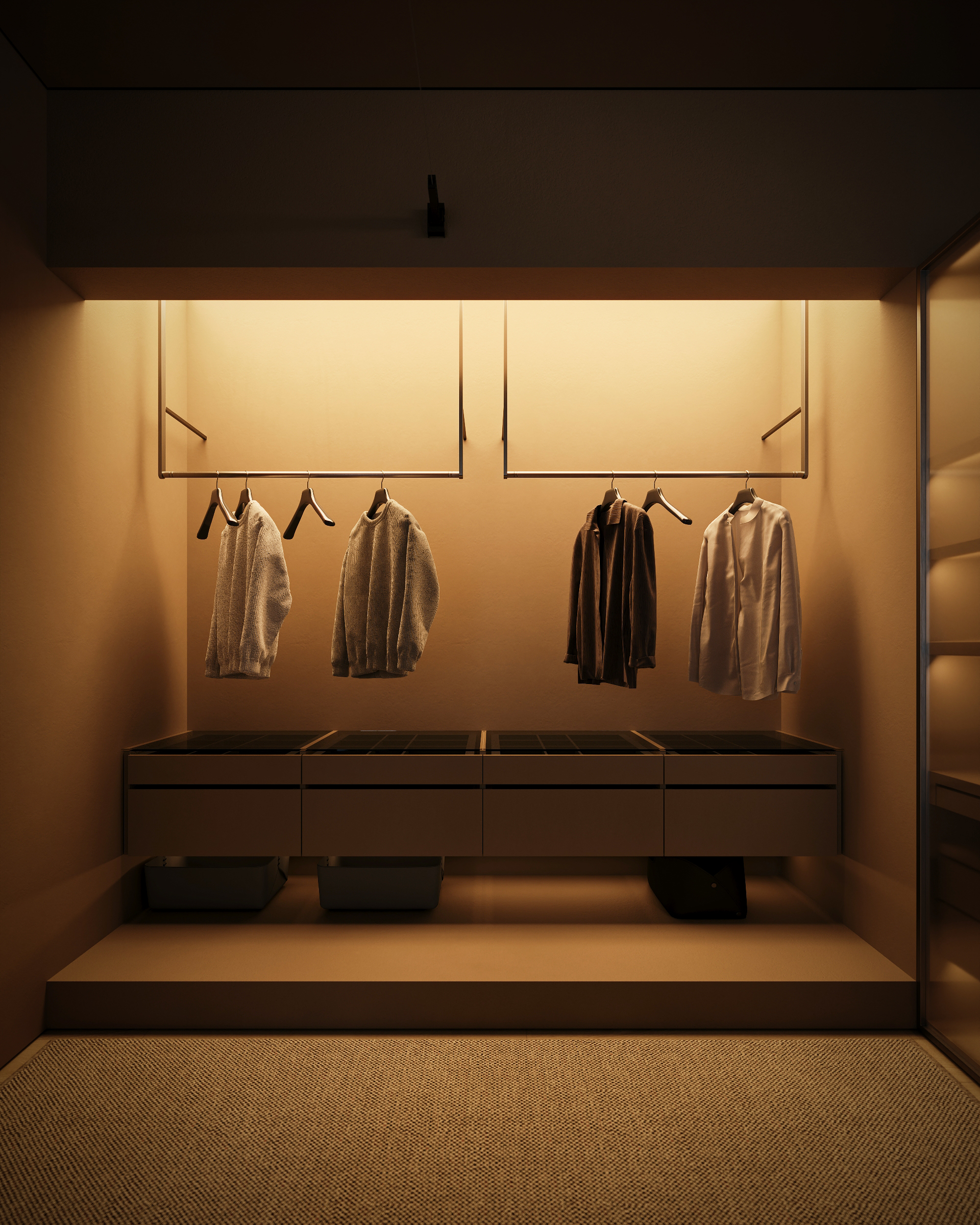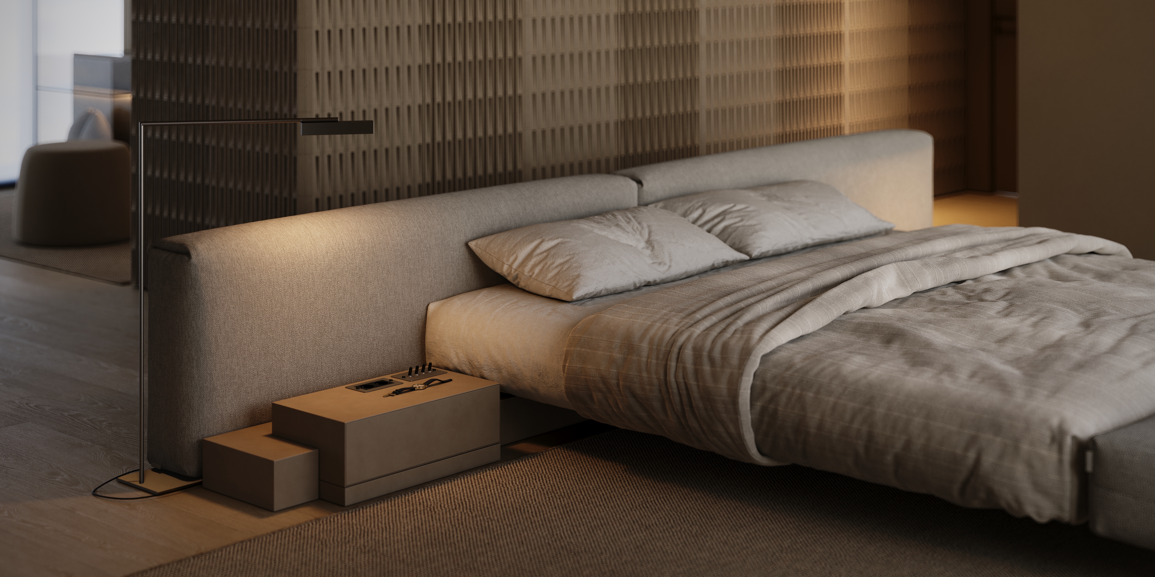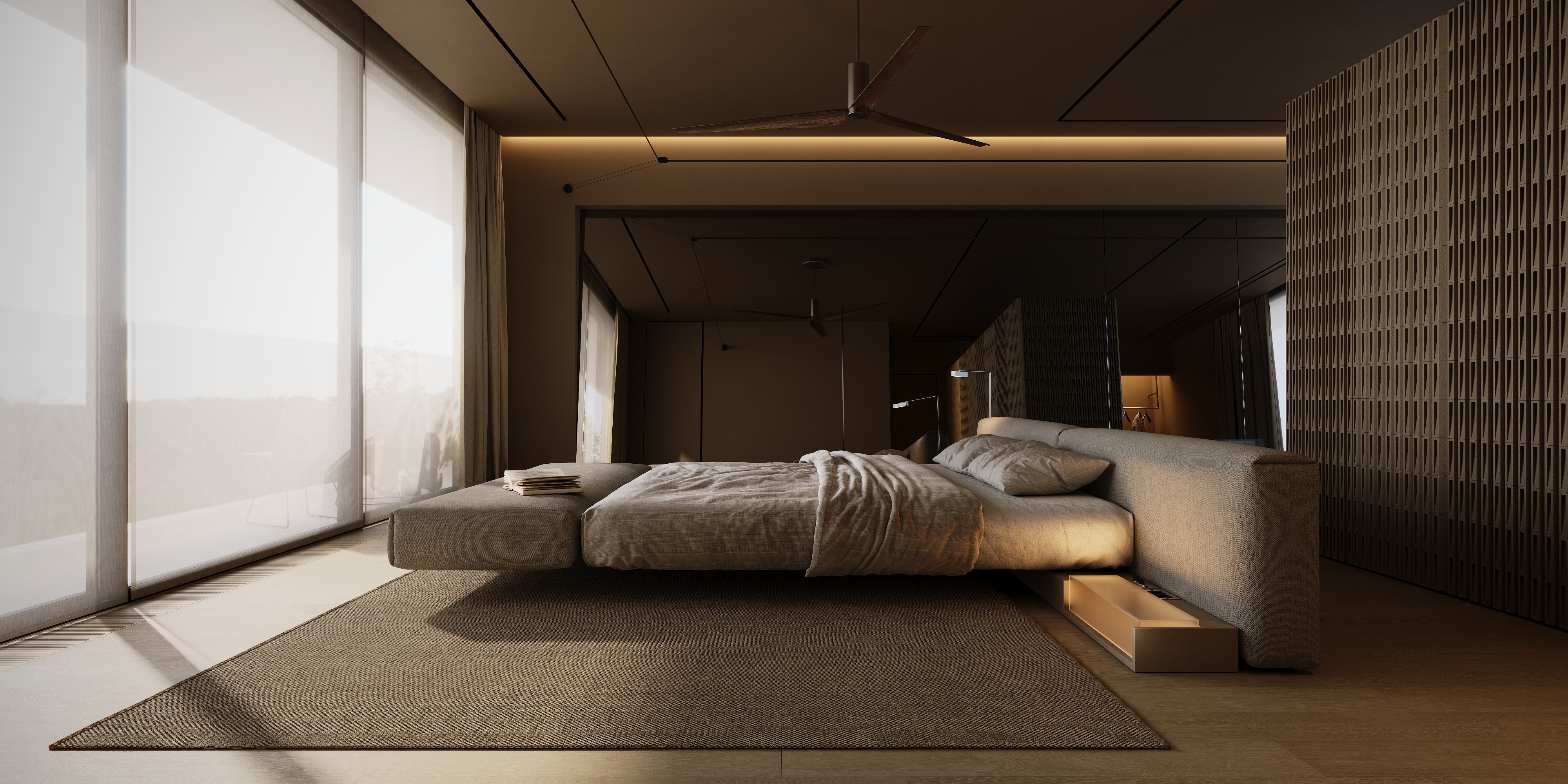 Задача была простая: сделать не светлый и не тёмный интерьер, без использования дерева и направленного технического освещения.