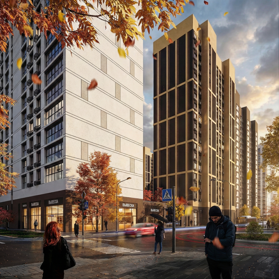 Проект жилого комплекса в г. Астрахань. Посажен на реальную вертикалку, всё в соответствии с гп и ПД.
