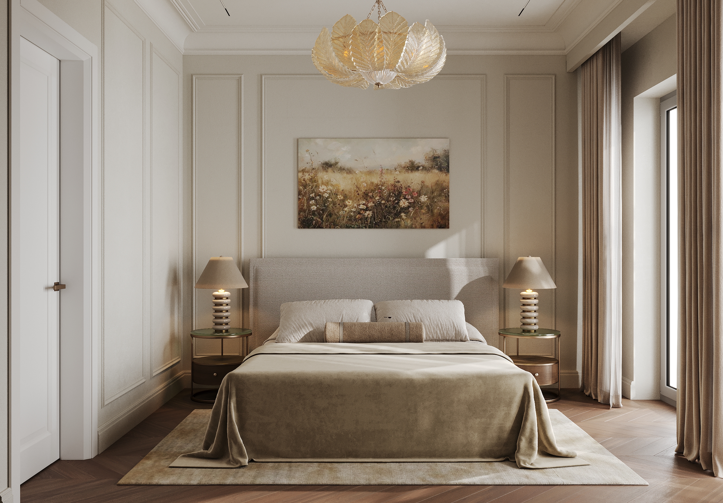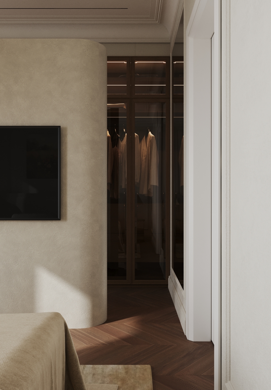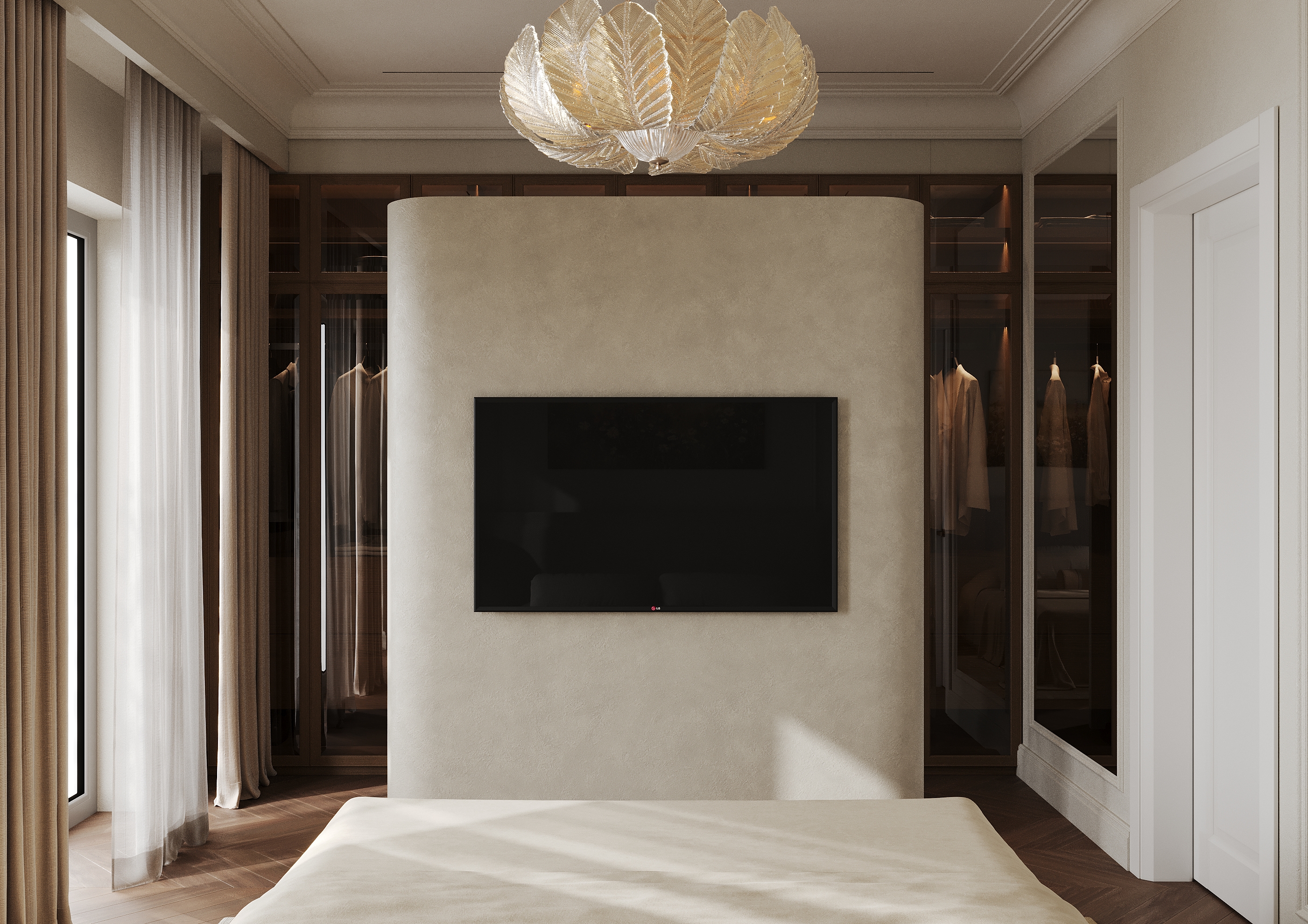 Уютная мастер спальня с красивым теплым подтоном.. vis: rozum_vi design: abas_architects