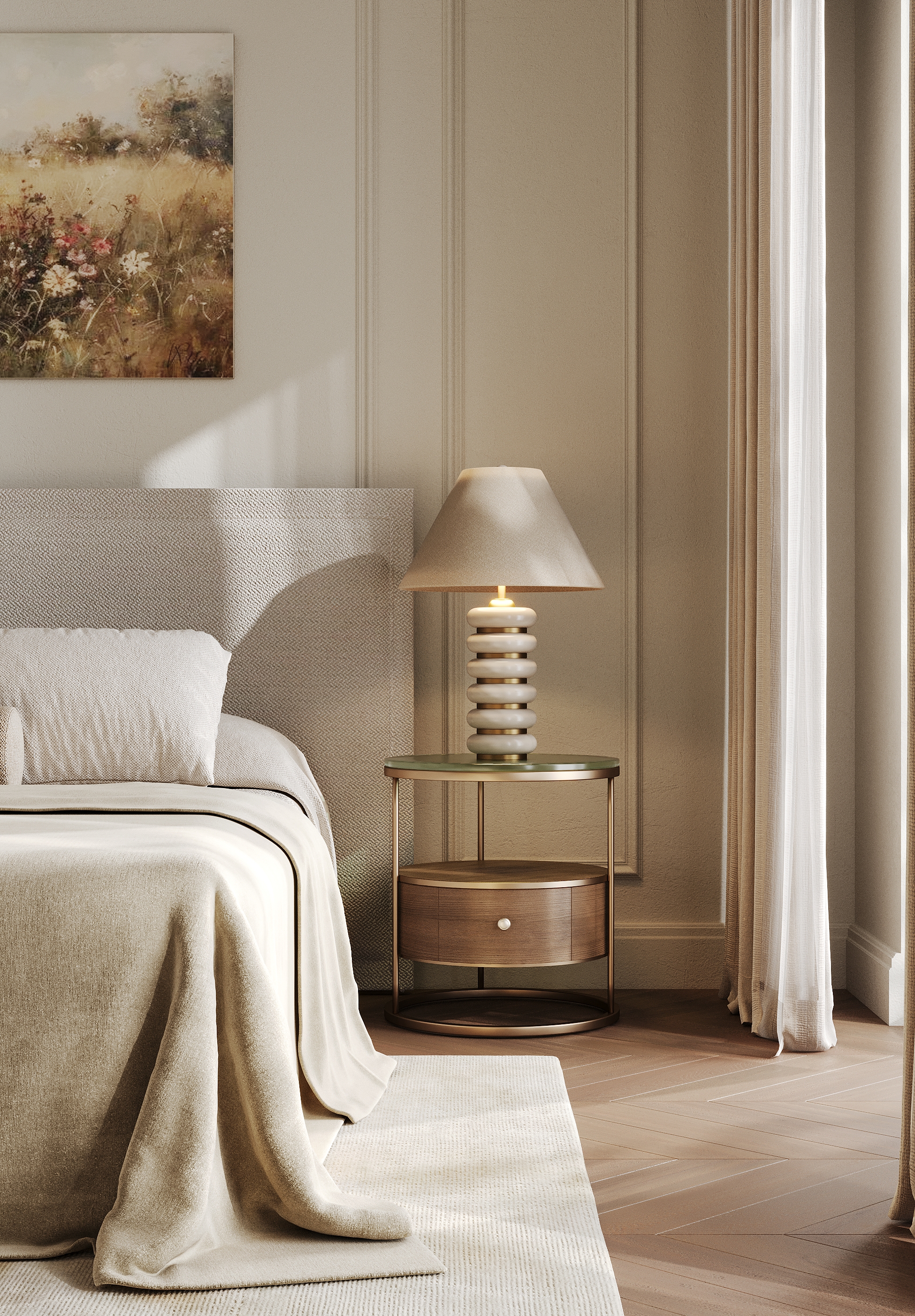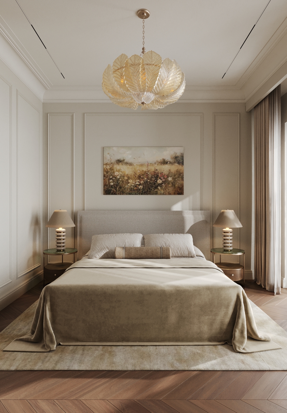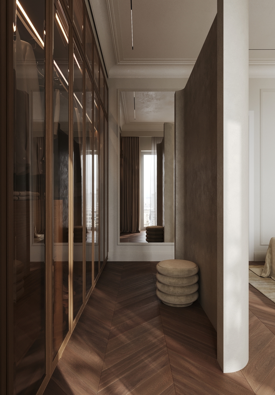 Уютная мастер спальня с красивым теплым подтоном.. vis: rozum_vi design: abas_architects