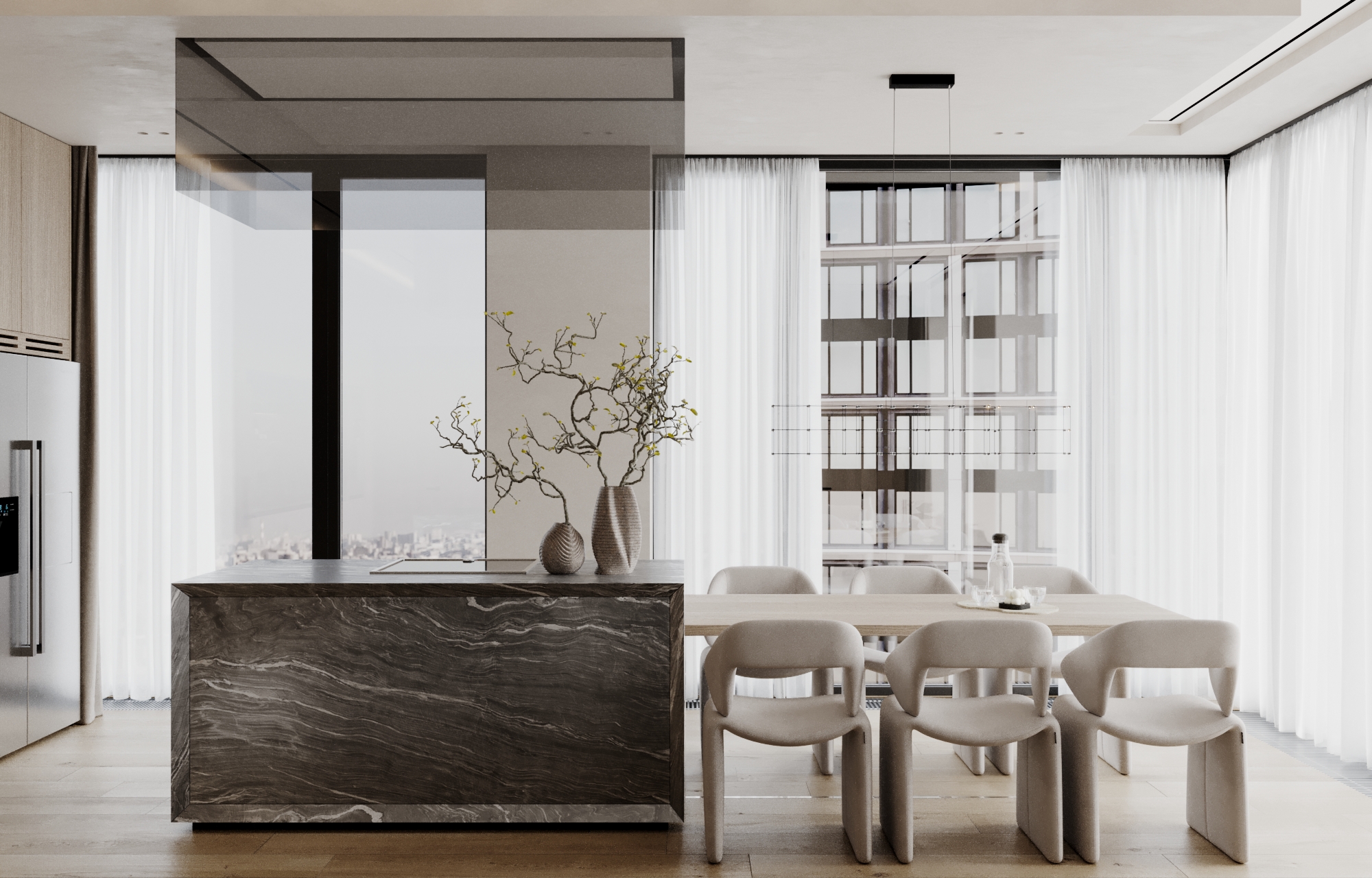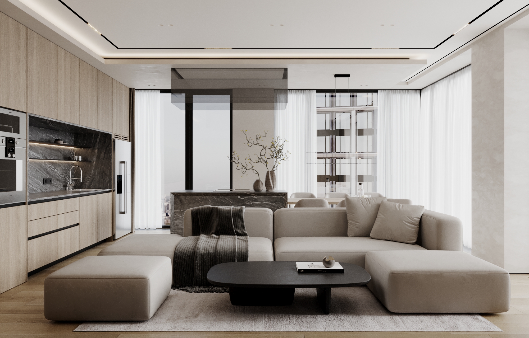 ЖК "Prime Park" Визуализация кухни-гостиной