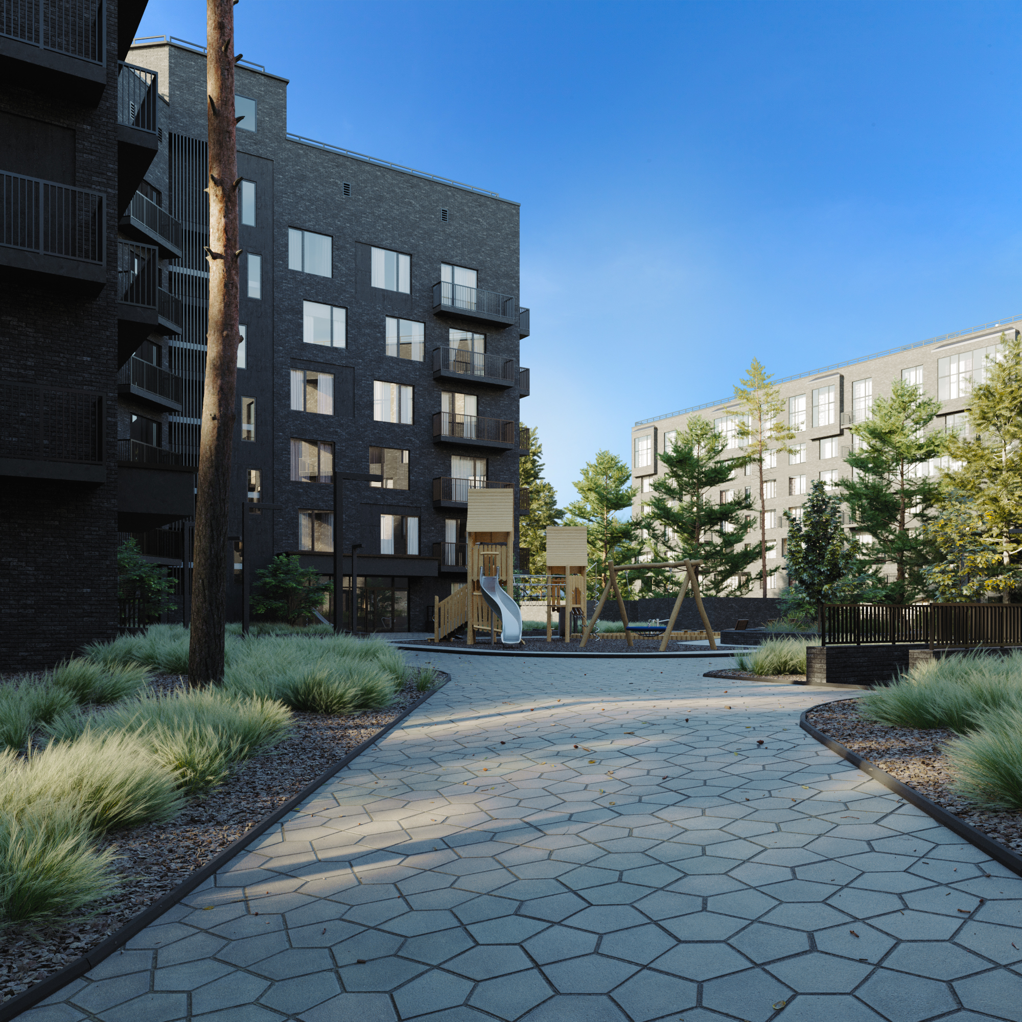 В году эдак 2020 делал рендеры для ЖК "FLORA&FAUNA". Из того, что делал, самому не понравилось. Можно у них на сайте наверное посмотреть. Эти рендеры я делал для портфолио в 2022. Чуть больше ракурсов можно посмотреть здесь: