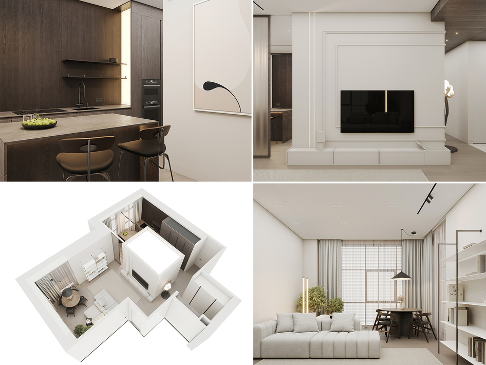 Объект: г. Москва ЖК "Павелецкая Сити" Квартира площадью - 130кв.м Soft: 3Ds Max / Corona renderer / Adobe Photoshop Больше кадров в - 4К