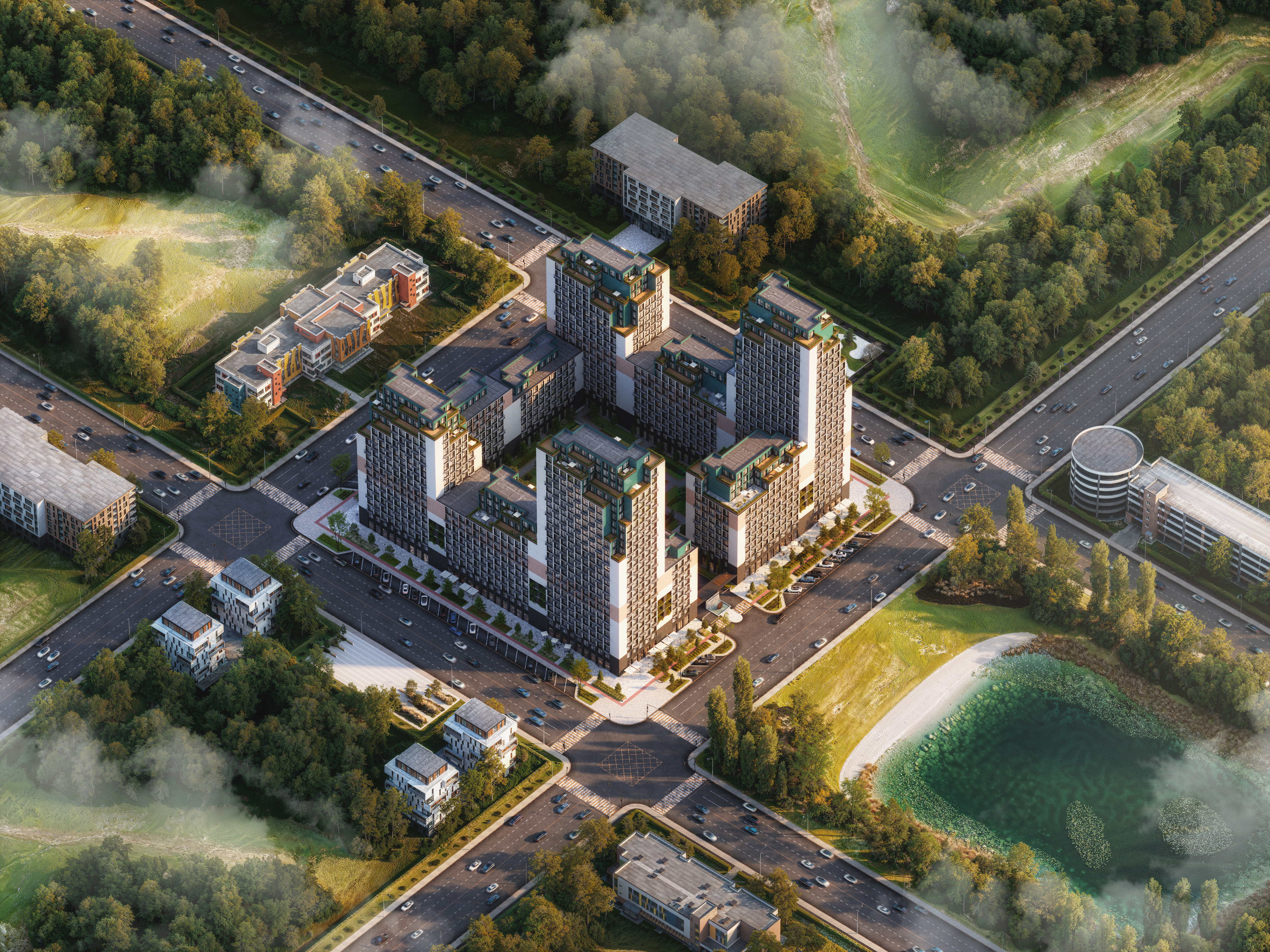 Хорошо получилось! Приятная, красивая работа. P.S. Домик около 27 этажей для какого региона России? Балкончики открытые, не остекленные, скорее всего не будут. Да высота ограждений на этих балкончиках, кажется, маловата. Не менее 1, 2 м должно быть.