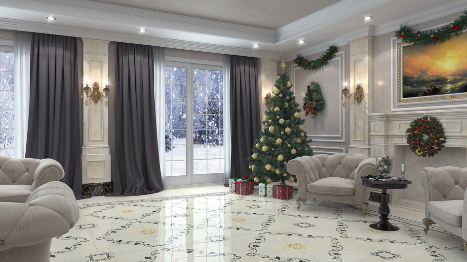 Работа была с целью показать плитку? или все-таки интерьер? Если интерьер- то пустовато и холодно. Хотелось бы огня в камине, ну или свечей, украшений.. на кресла плед, коврик может быть, для уюта.. ну и прочее- что делает помещение обжитым- а не компьютерной картинкой.. и вставляя фон в фотошопе, позаботьтесь об отражениях