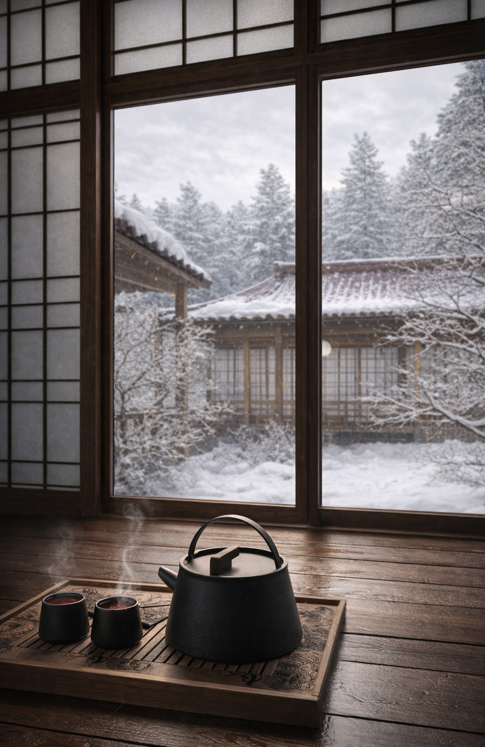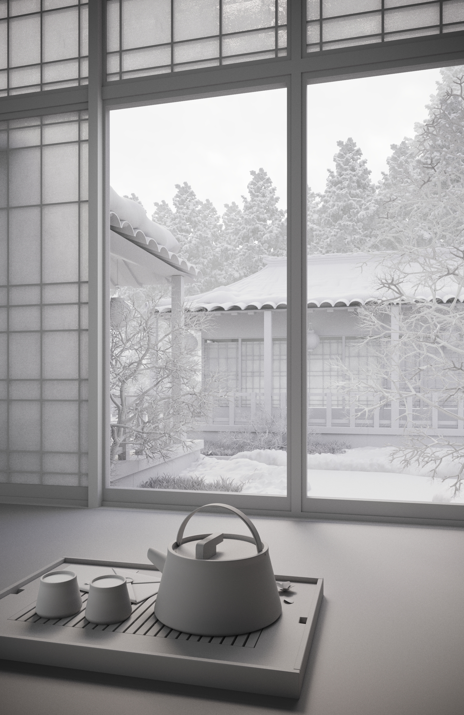 зимний уют в японском домике) 3ds max + corona + photoshop + sd