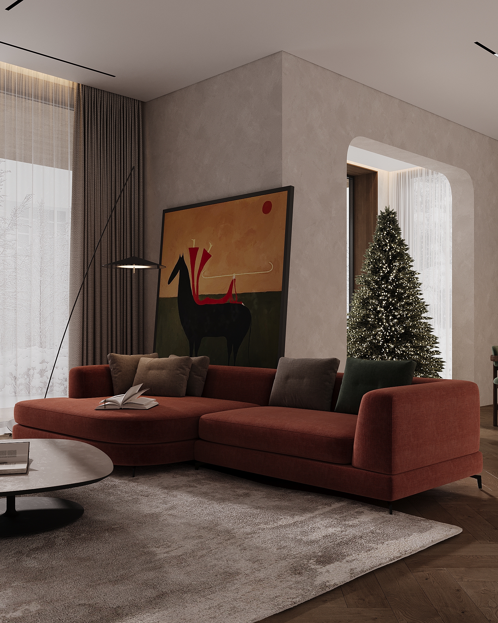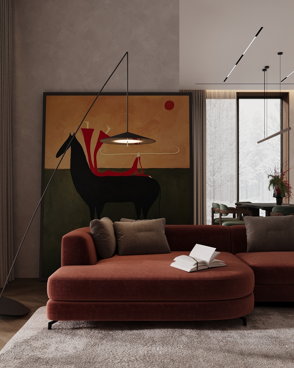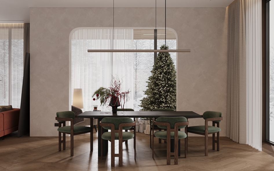 Хотелось передать ощущение уюта и тепла в зимний вечер, когда за окном идёт снег, свет мягко рассеивается в пространстве, а дом становится местом тишины и спокойствия.