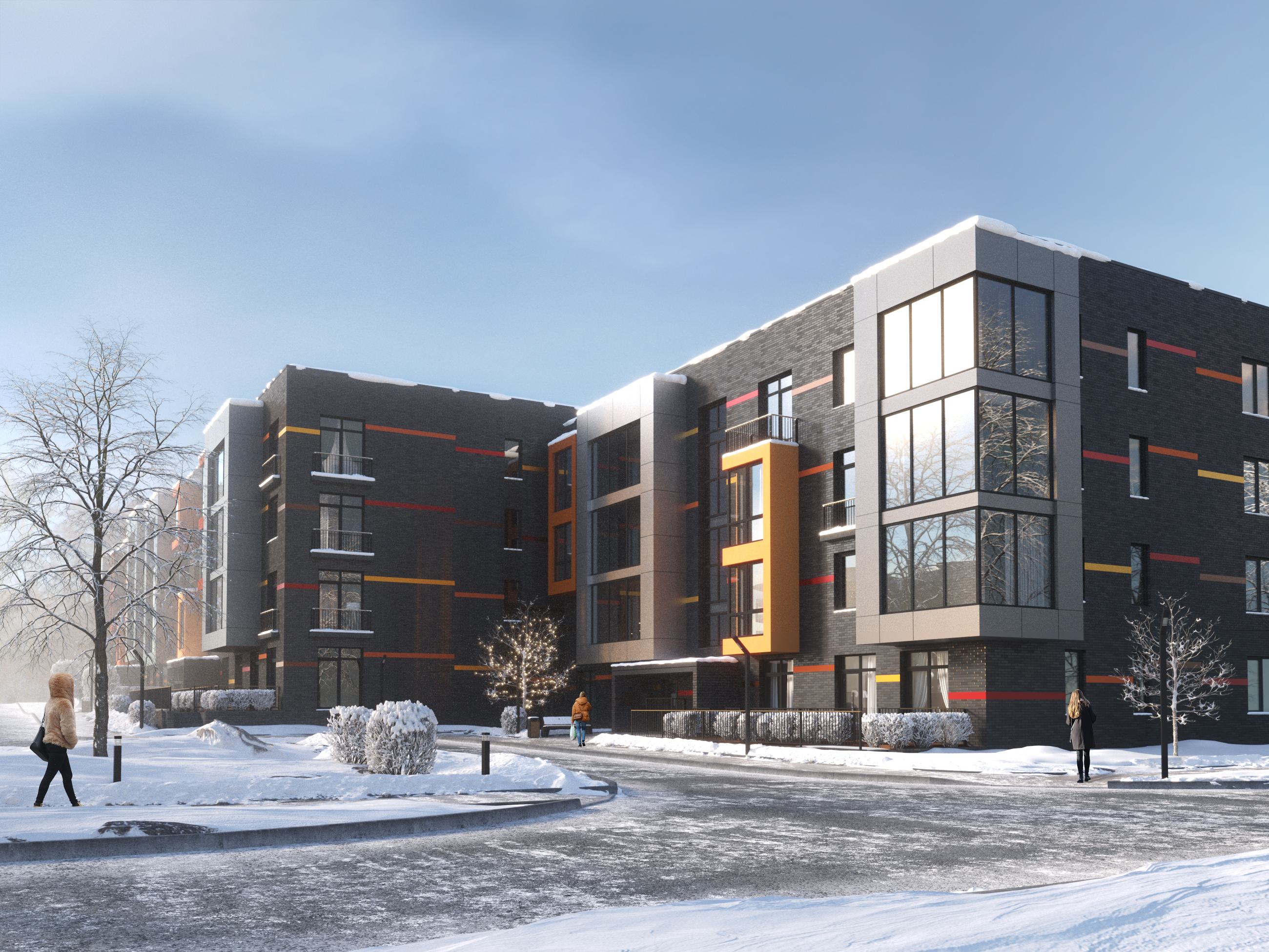 В этой зимней визуализации жилого комплекса царит волшебная атмосфера спокойствия и уюта. Снег мягко покрывает каждую поверхность, создавая ощущение сказочного белоснежного одеяла, которое нежно обнимает дома и окружающую природу. Легкое солнечное сияние пробивается сквозь мутное небо, придавая сцене особую таинственность и мягкое тепло, словно природа сама наполняет этот уголок светом и надеждой. В этом зимнем пейзаже сочетается гармония природы и современного комфорта — место, где каждый день наполняется особым очарованием и спокойствием, приглашая к уюту и размышлениям. ЖК Спектр. Новосибирск